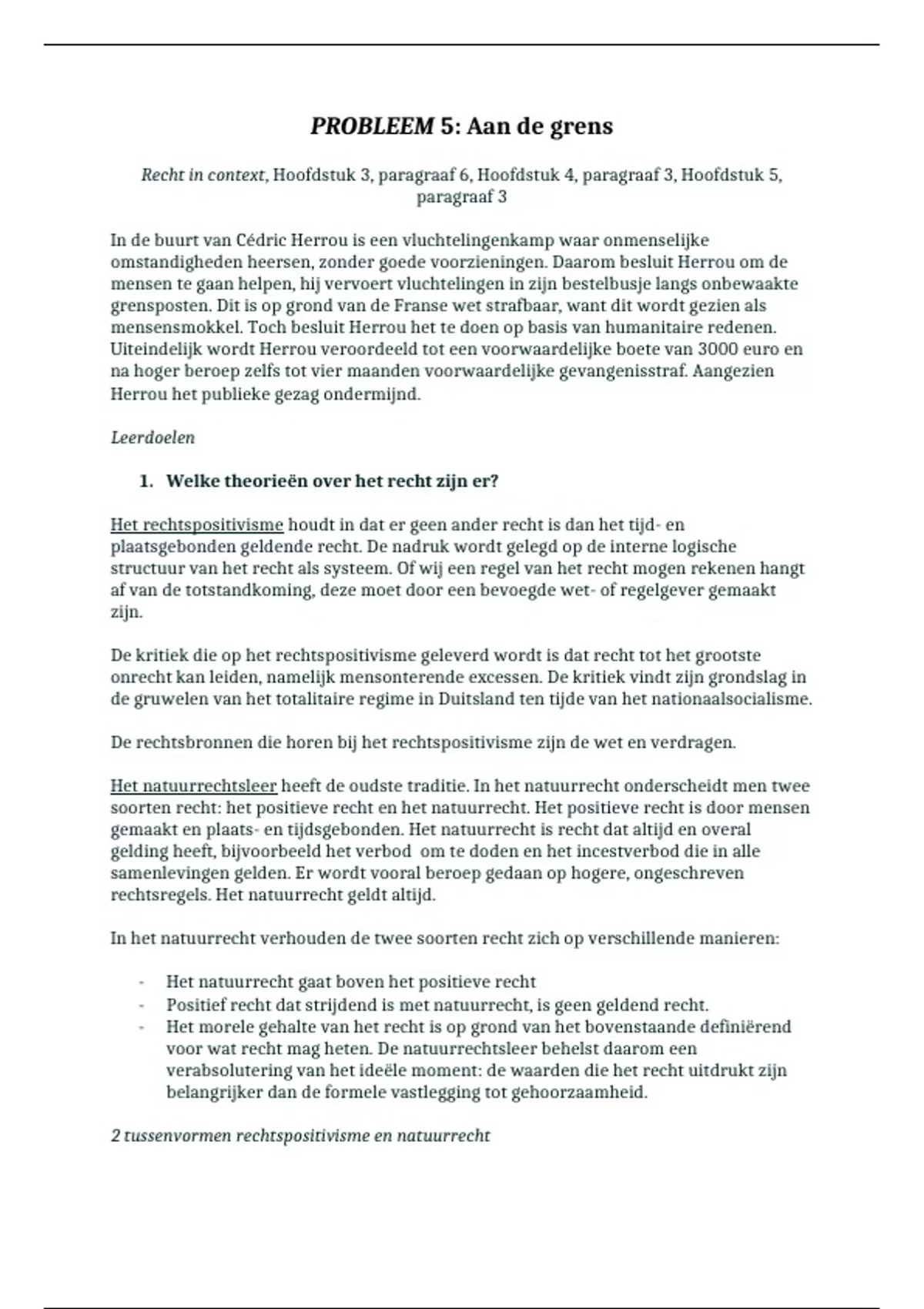soorten recht: het positieve recht en het natuurrecht. Het positieve recht is door mensen