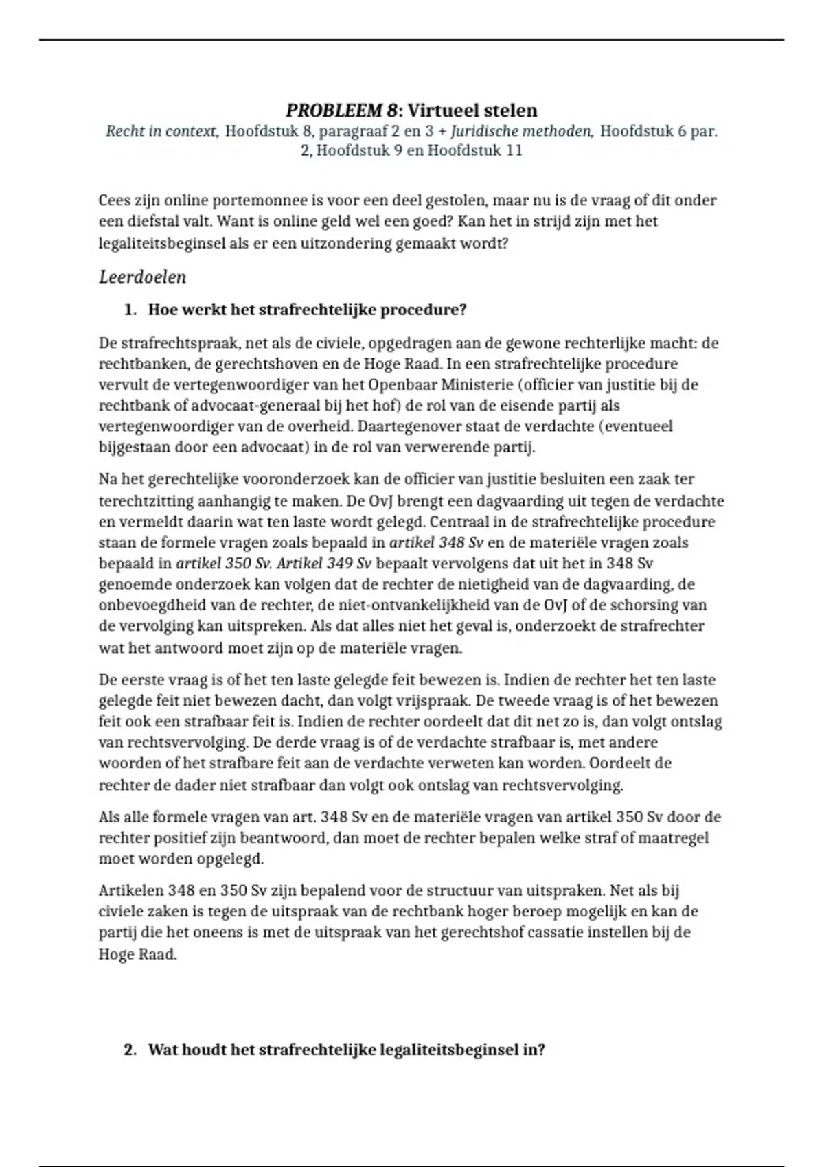 Uitwerking van de leerdoelen van probleem 8 - Inleiding rechtswetenschap - 2023/2024