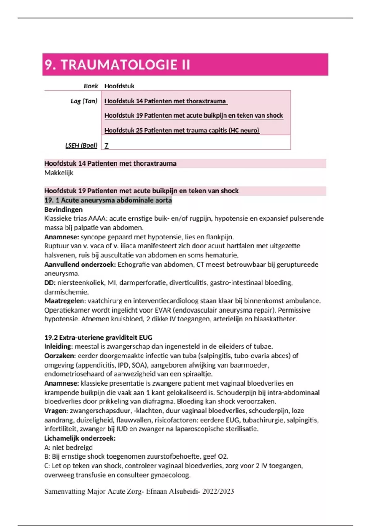 Samenvatting Major Acute Zorg- Efnaan Alsubeidi- 2022/2023