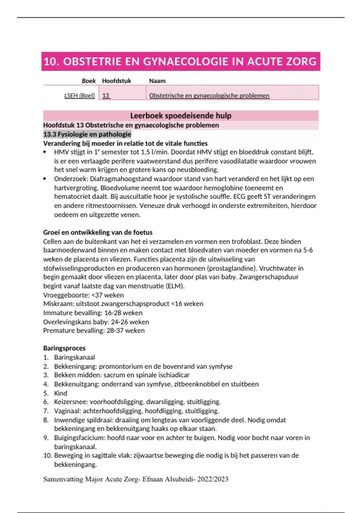 Samenvatting Major Acute Zorg- Efnaan Alsubeidi- 2022/2023