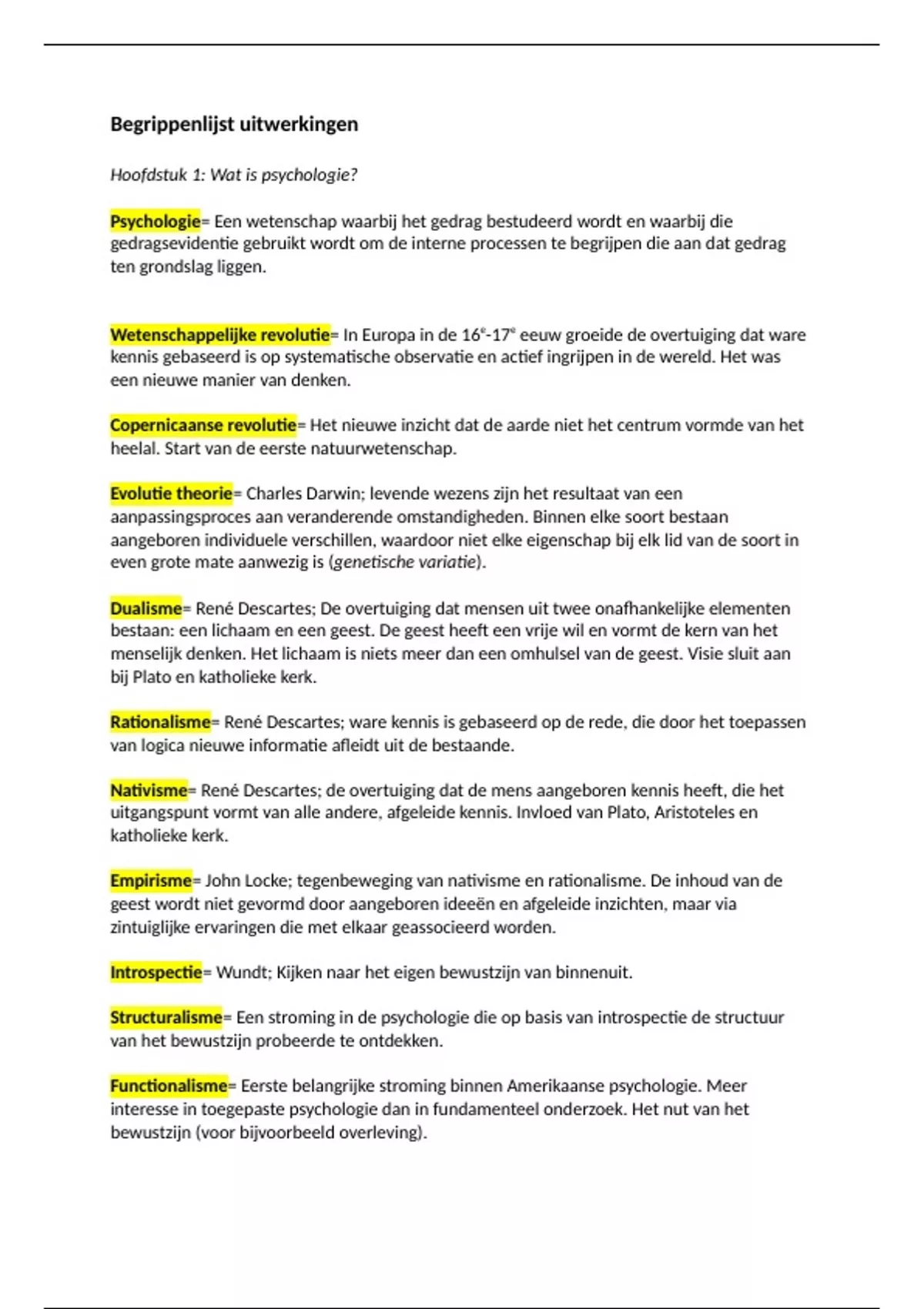 In dit document staan alle begrippen (met uitleg en voorbeelden) die je moet kennen voor het tentamen van hoofdstuk 1, 3 t/m 7, 9 en 10. Voor het vak heb ik een 7,6 gehaald. Dit vak is onderdeel van de minor inleiding in de toegepaste psychologie aan de HU. Ik heb de minor in het tweede semester van leerjaar 2022/2023 gevolgd.