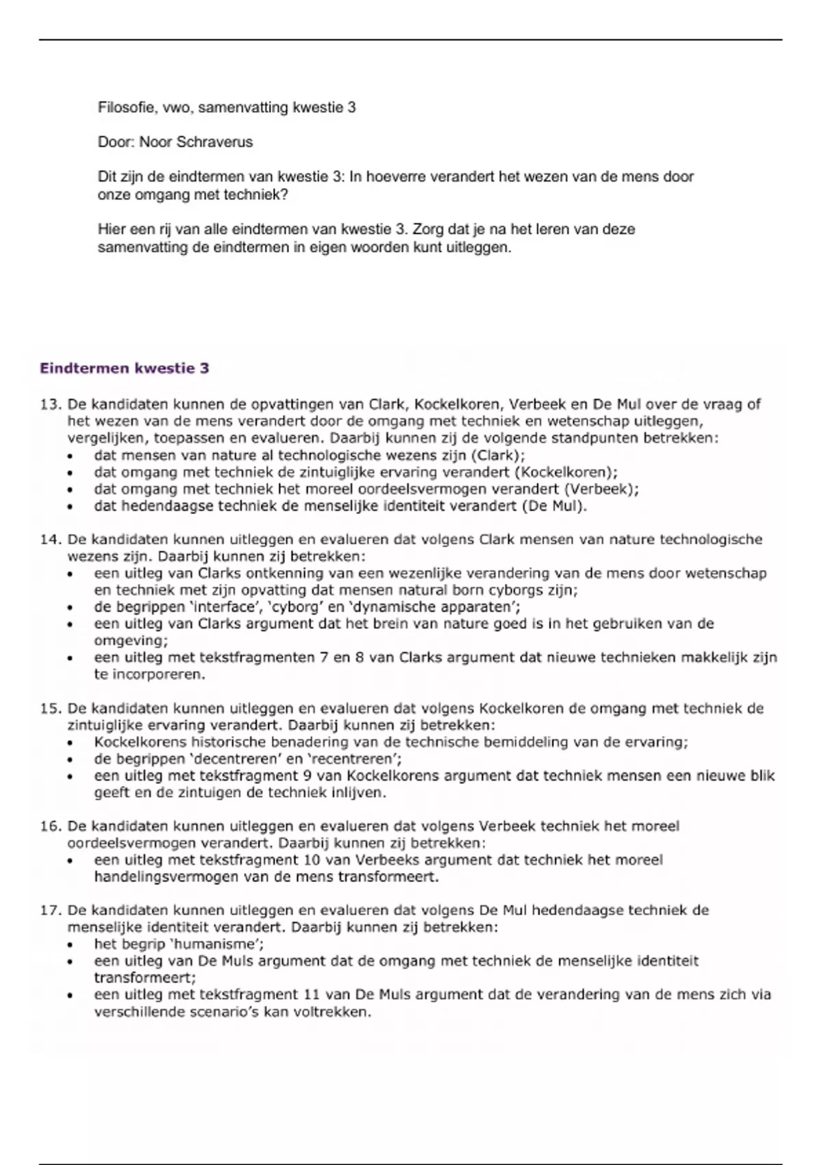 Samenvatting Filosofie VWO kwestie 3 examen eindtermen 2024/25
