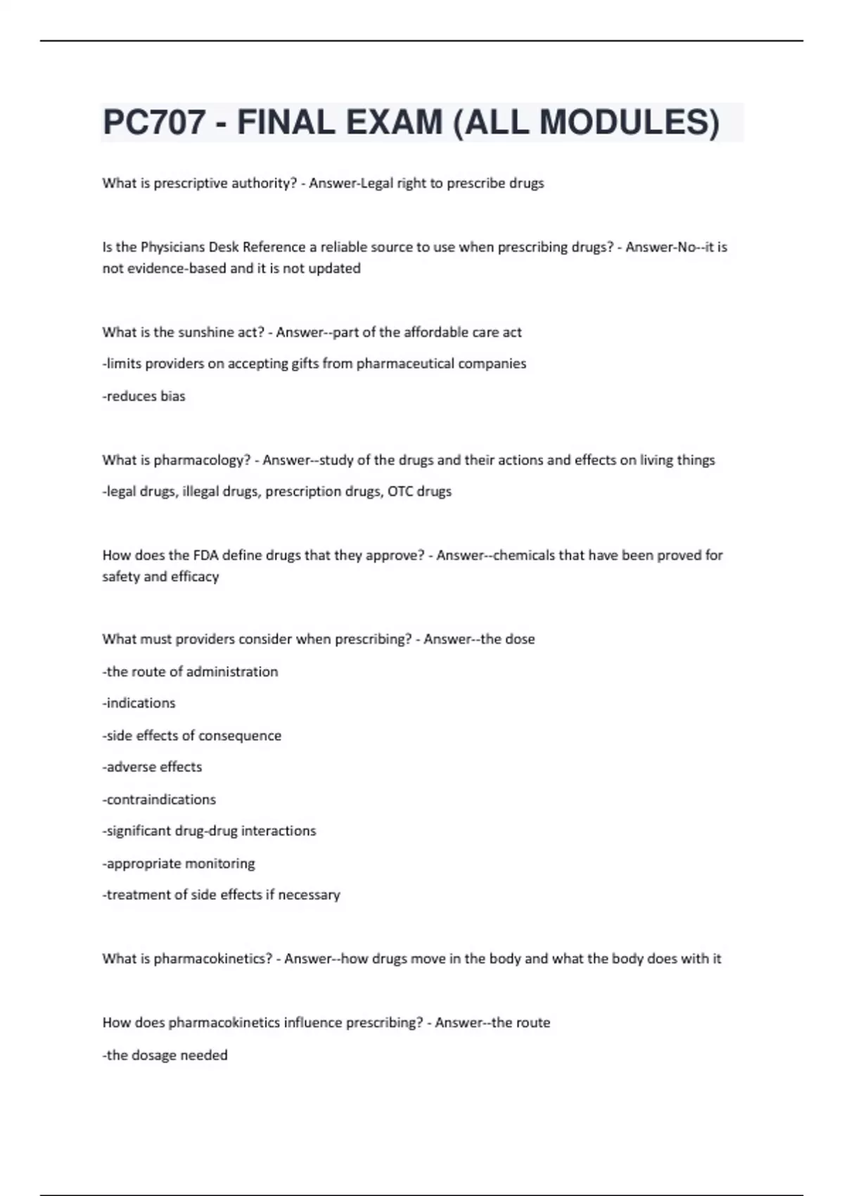 PC707 - FINAL EXAM (ALL MODULES) QUESTIONS WITH 100 % CORRECT ANSWERS | VERIFIED