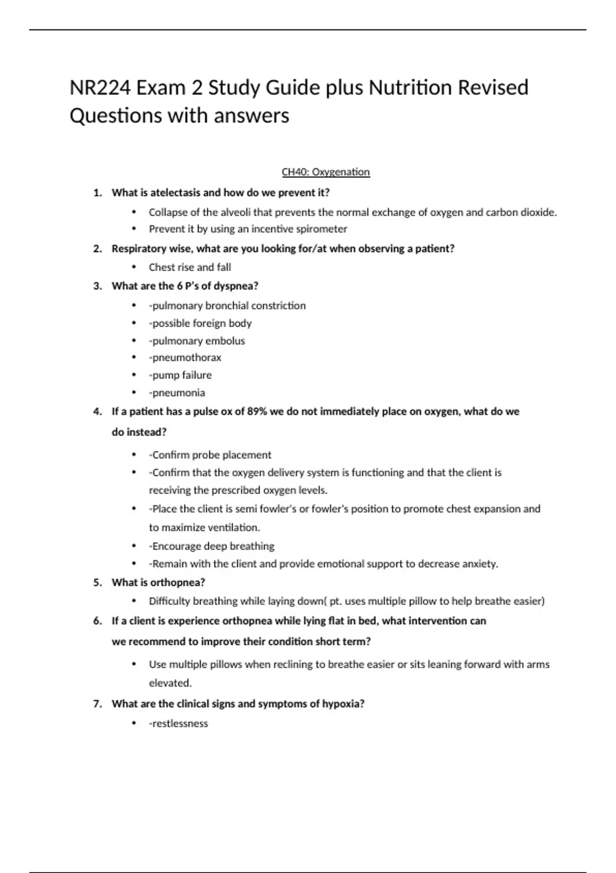 NR224 Exam 2 Study Guide plus Nutrition Revised Questions with answers
