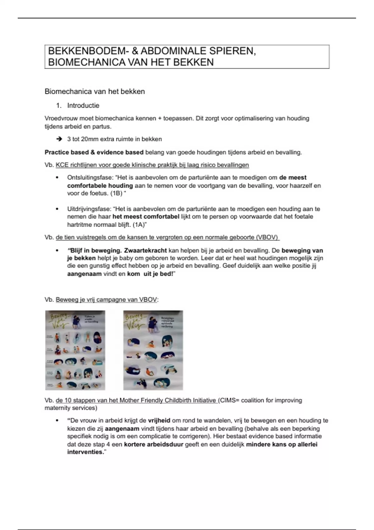 Vroedvrouw moet biomechanica kennen + toepassen. Dit zorgt voor optimalisering van houding