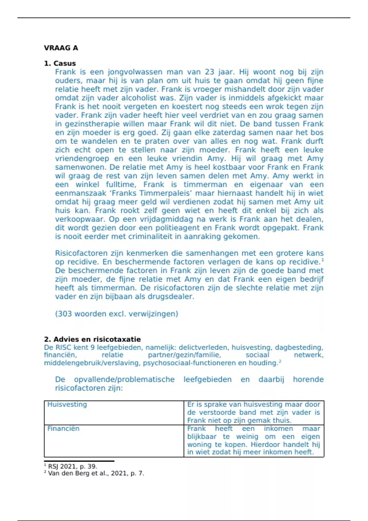 Hierbij mijn takehome tentamen van het vak reclassering in 2024 . Dit vak is een onderdeel van de minor forensische criminologie. Ik heb zelf een 8,5 behaald met deze uitwerkingen.