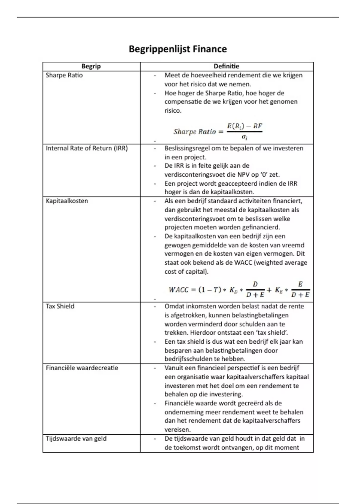 Samenvatting ASM4 Financieel Perspectief op Besturen: Begrippenlijst Finance