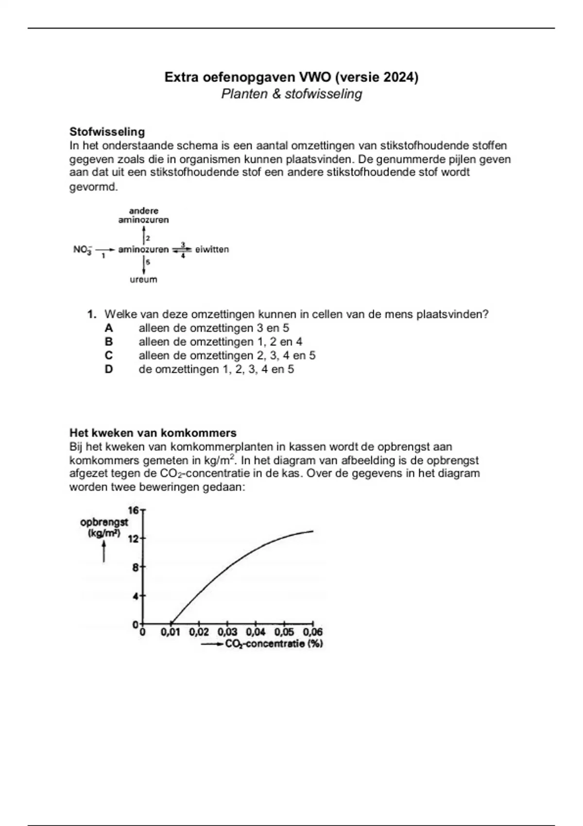 2. Bij een CO 2-concentratie in de lucht van 0,01% treedt bij de komkommerplanten