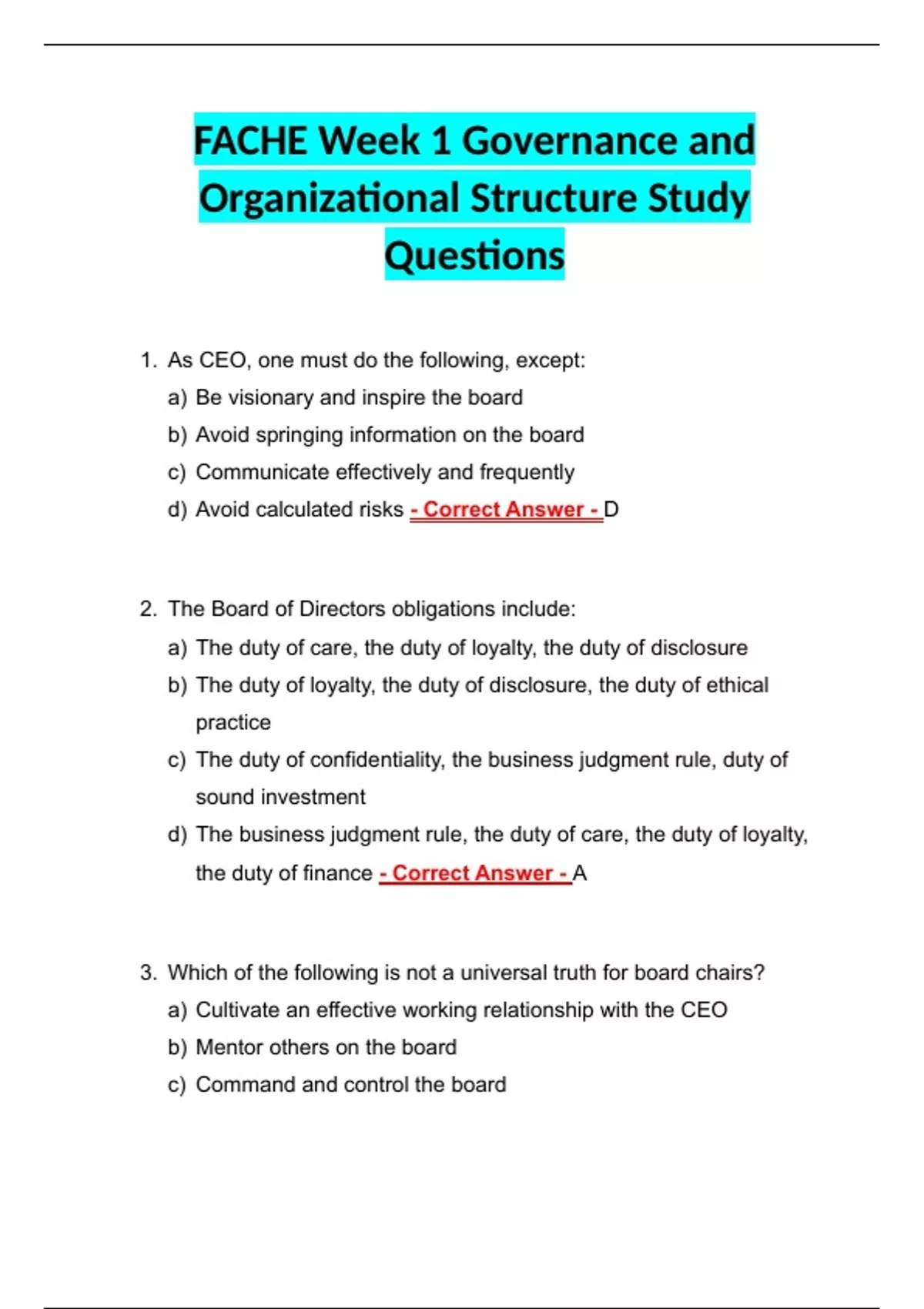 FACHE Week 1 Governance and Organizational Structure Study Questions FACHE Week 1 Governance and Organizational Structure Study Questions FACHE Week 1 Governance and Organizational Structure Study Questions