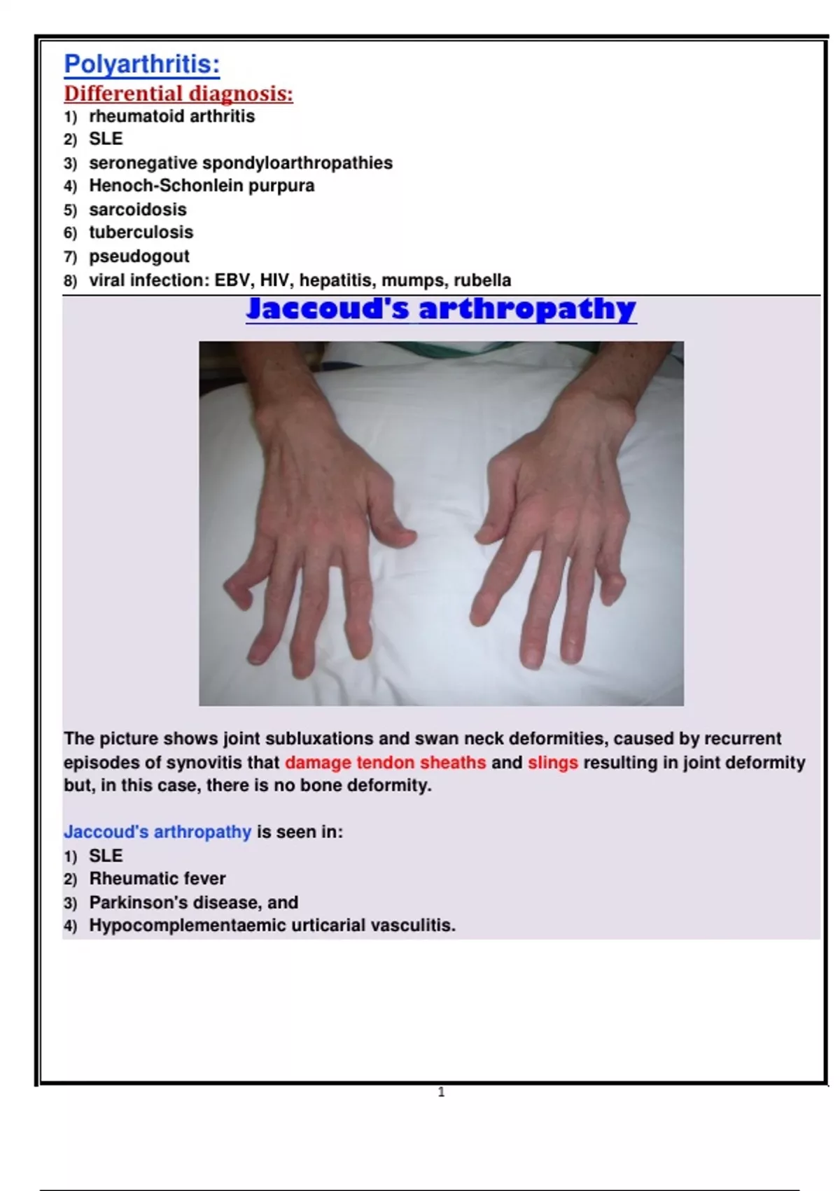 The picture shows joint subluxations and swan neck deformities, caused by recurrent