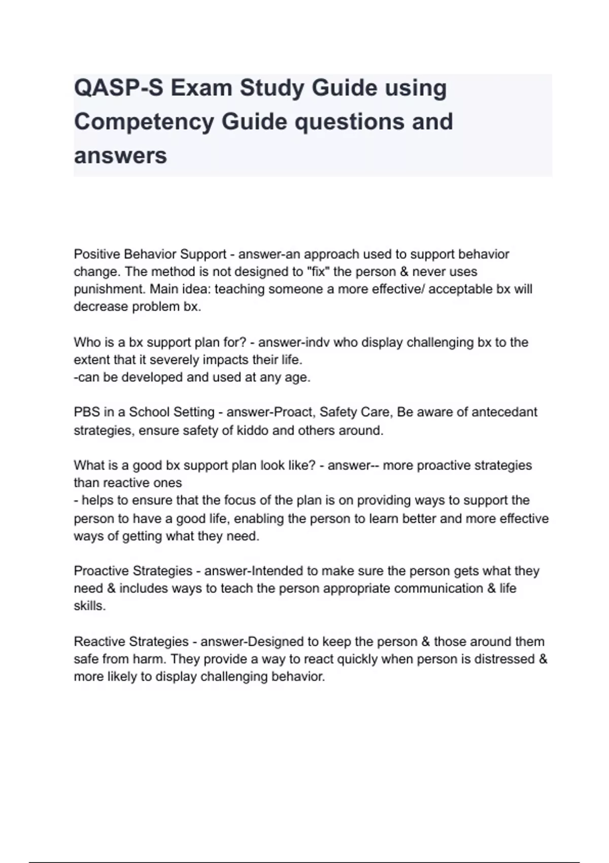 QASP-S Exam Study Guide using Competency Guide questions and answers