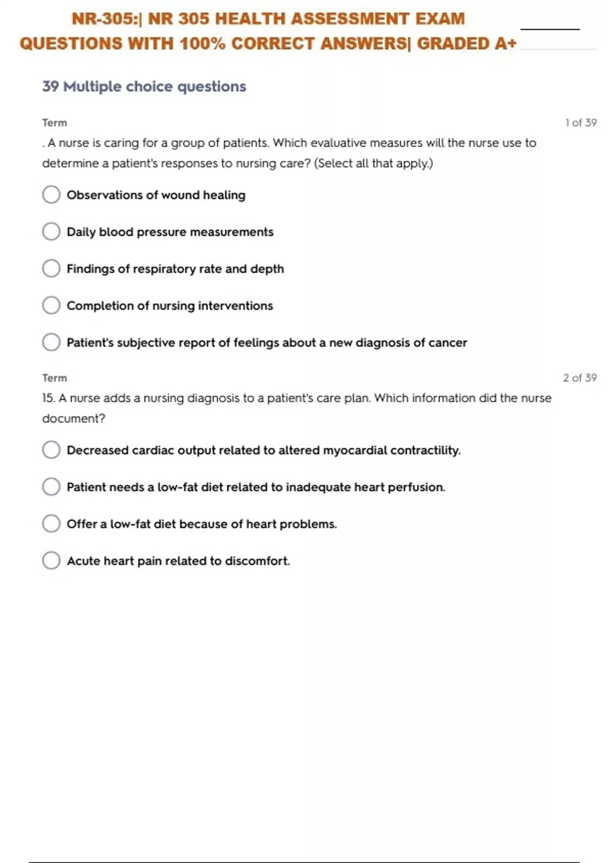 NR-305:| NR 305 HEALTH ASSESSMENT EXAM TEST 27 WITH 100% CORRECT ANSWERS| GRADED A+