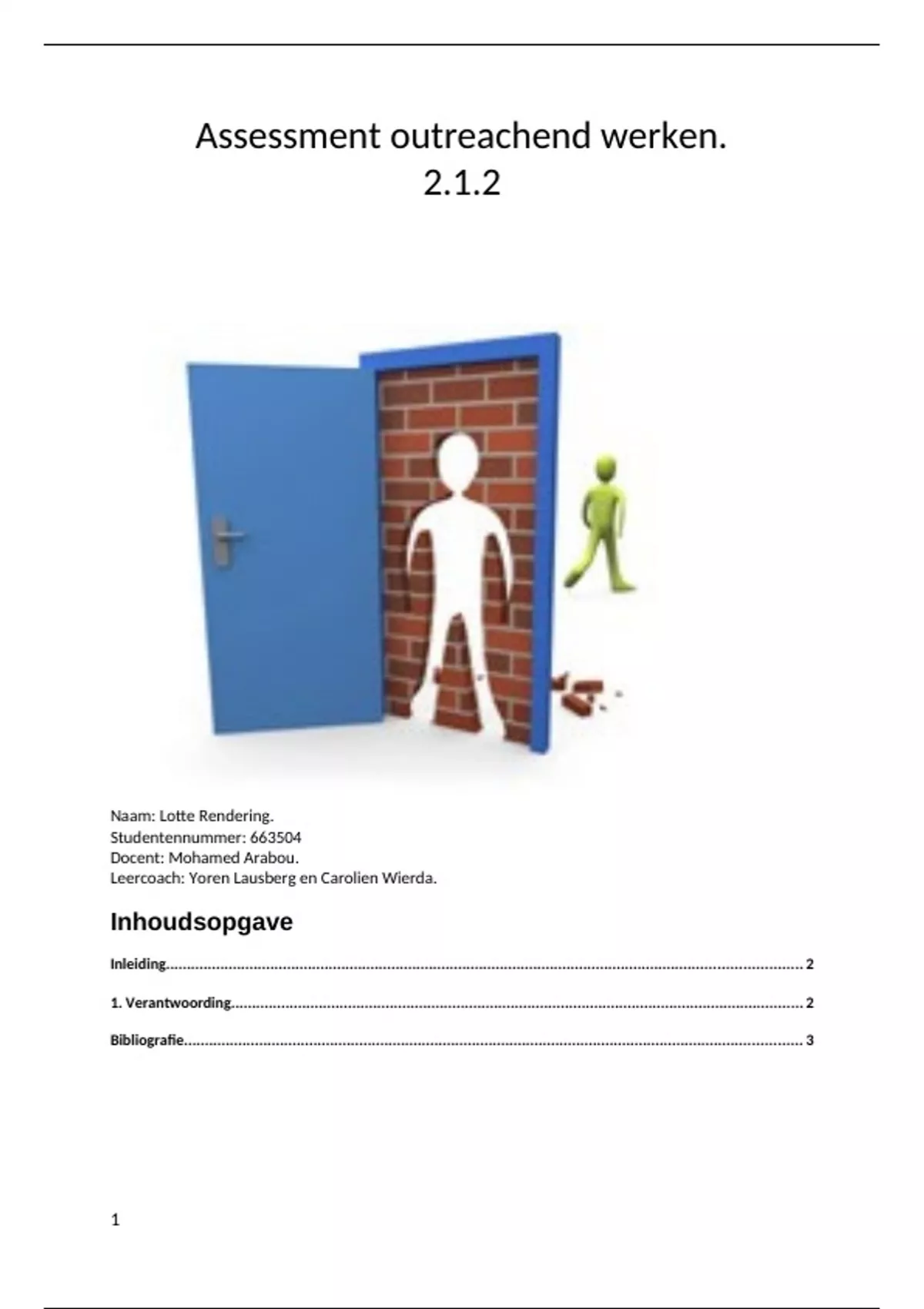Voor outreachend werken hebben wij geleerd hoe je aan de deur hulpverlening biedt. Hoe pak jij het aan door ongevraagd hulp te bieden, wat moet je doen, zeggen en hoe reageer je als iemand jouw hulp niet wil. Ik had mevrouw van Amerongen, zij verwaarloosde zichzelf en haar man was onlangs overleden. Hoe ik het outreachend werken heb aangepakt en mijn keuzes gebaseerd op de theorie kan je in dit verslag lezen.