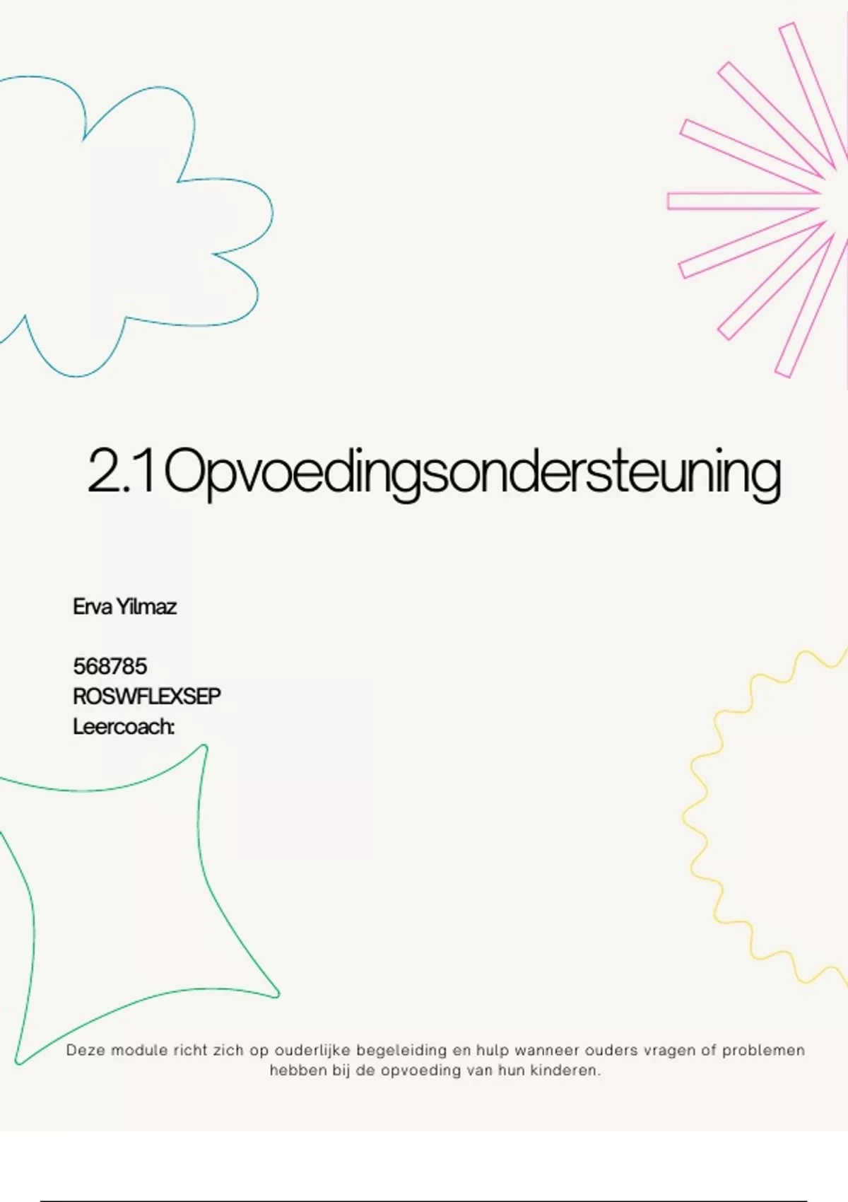 Voor de module 2.1. Opvoedingsondersteuning heb ik twee gezinnen geïnterviewd die vragen hadden over