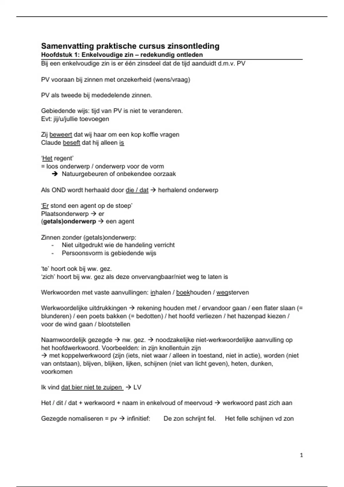Hoofdstuk 1: Enkelvoudige zin – redekundig ontleden
