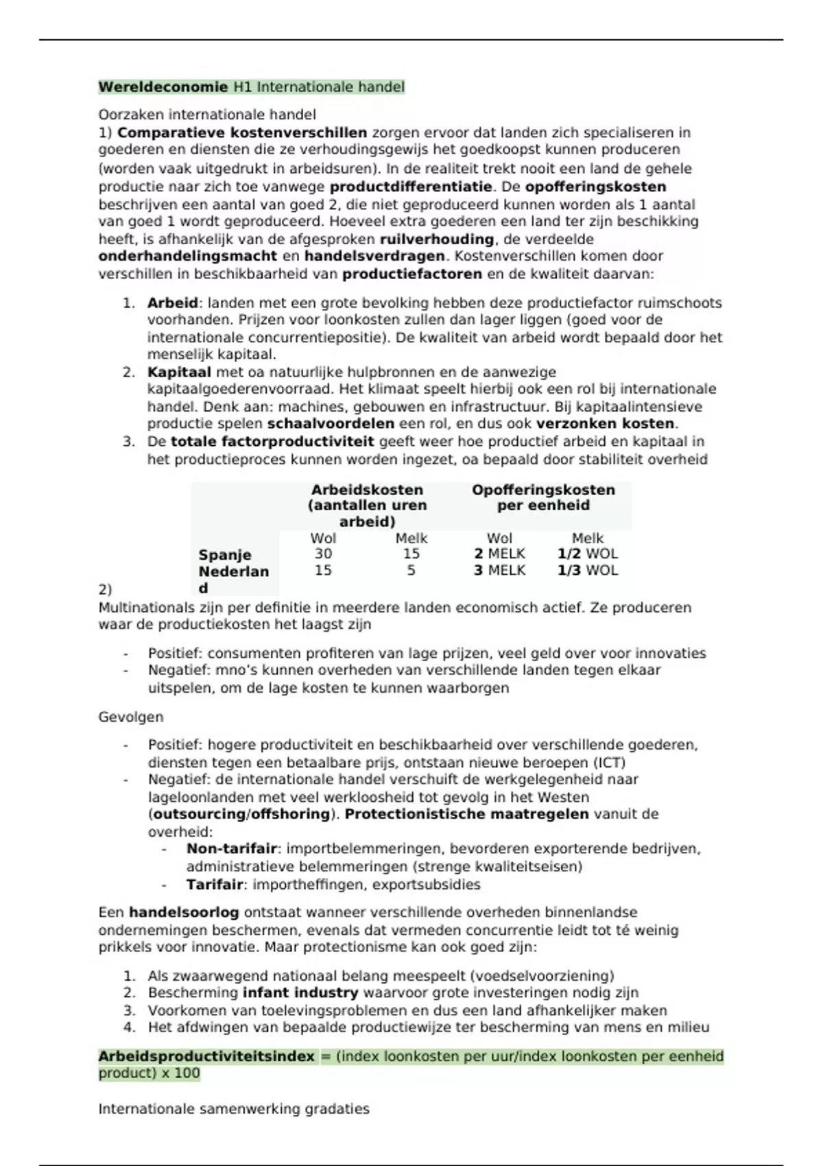 ruilverhouding, de verdeelde onderhandelingsmacht en handelsverdragen. Kostenverschillen