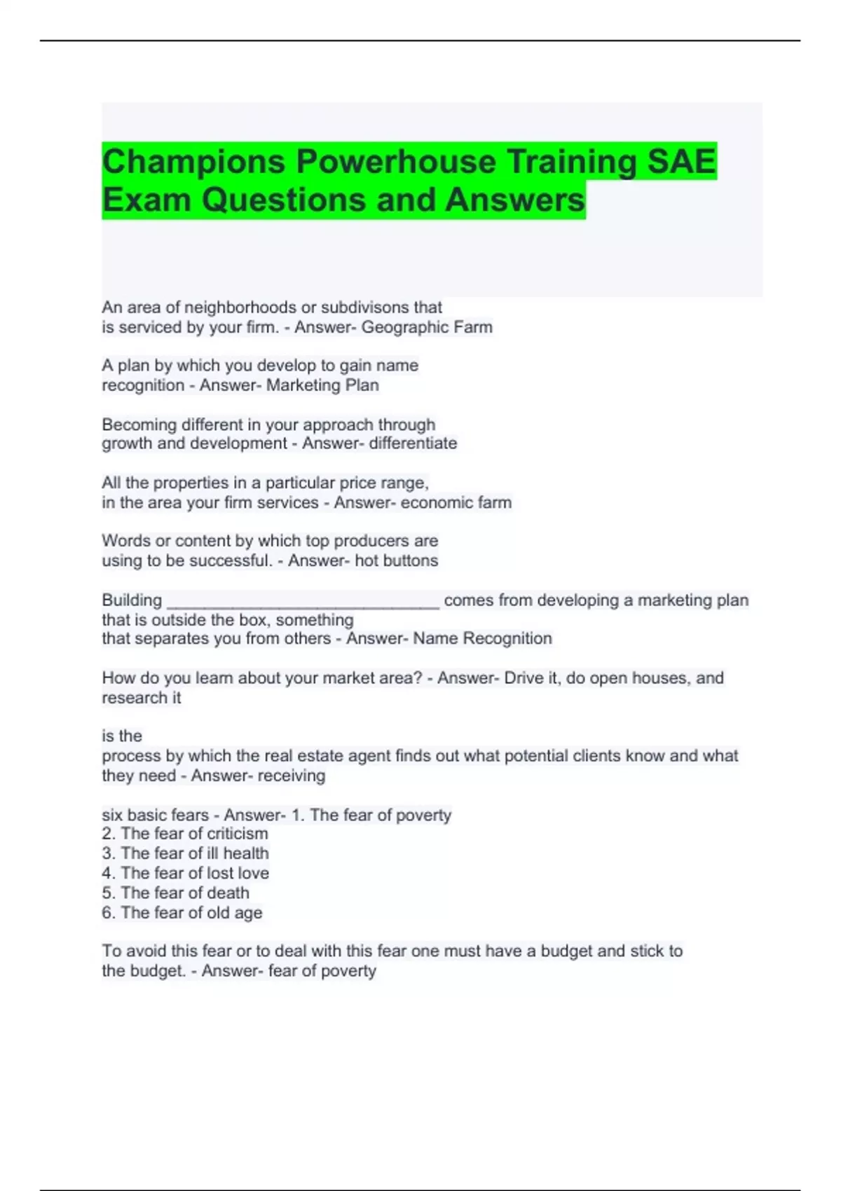 Real estate Marketing Power House Training (SAE)-/Champions Real Estate Marketing SAE Exam Bundle