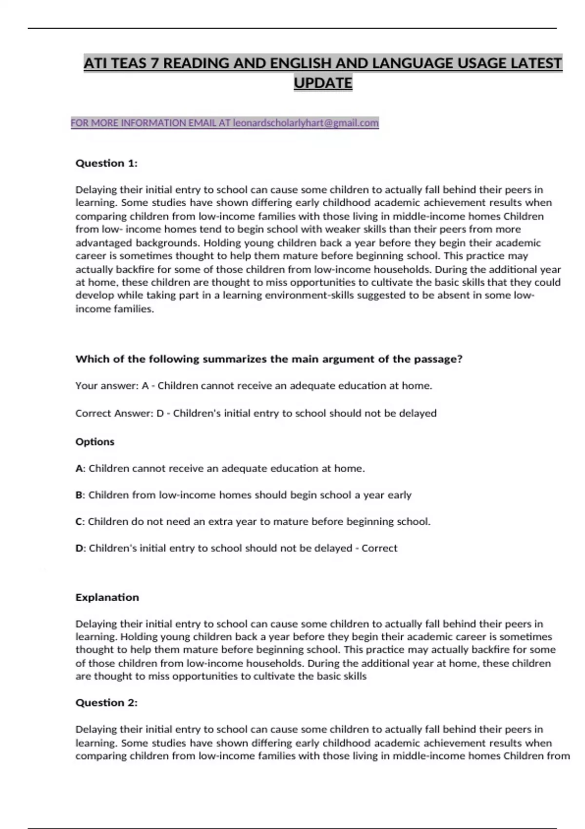 ATI TEAS 7 READING AND ENGLISH AND LANGUAGE USAGE
