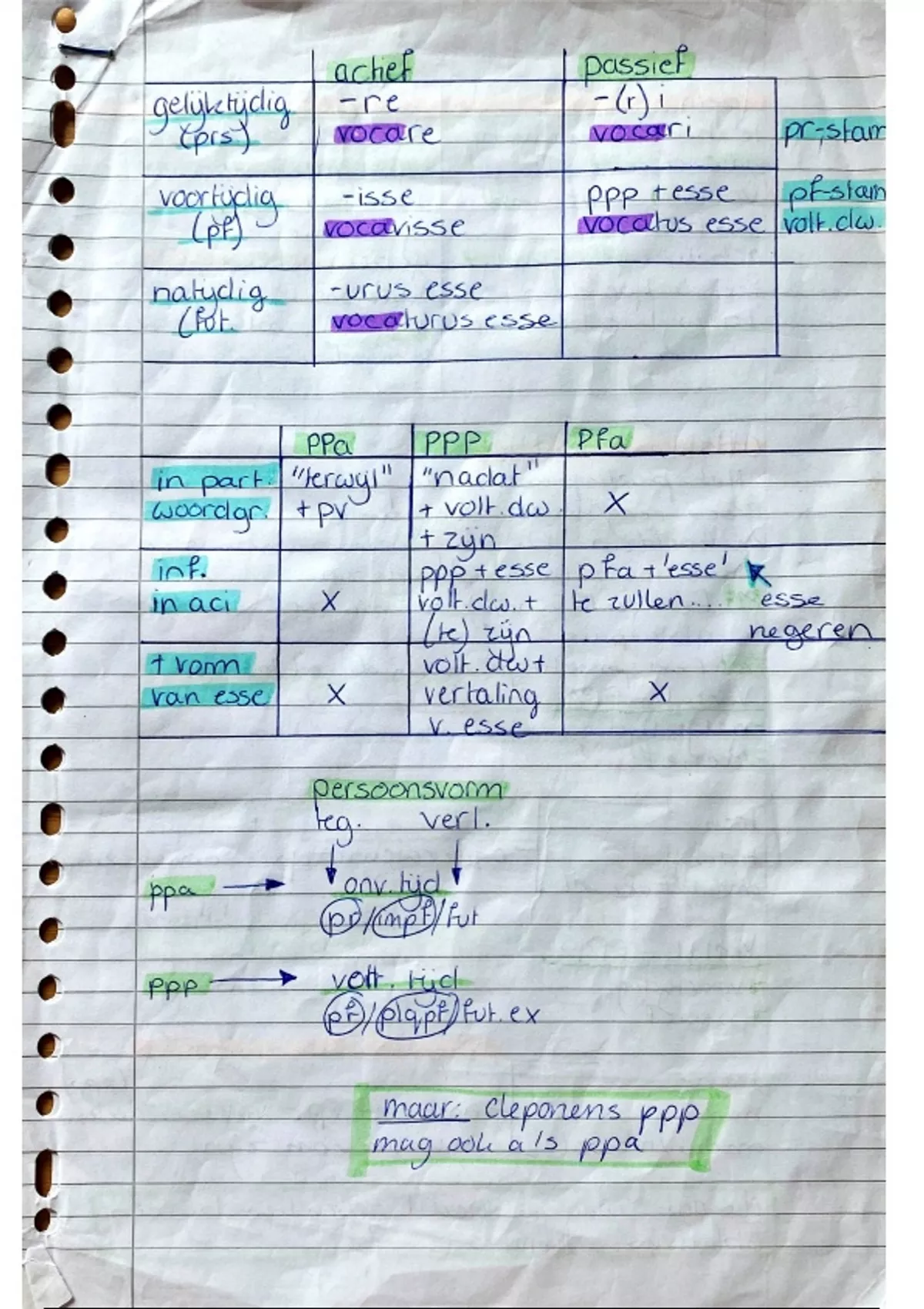 Dit overzicht bevat hoe je ppp, ppa, gerundium, gerundivum van verplichting, dominant gerundivum moet vertalen.