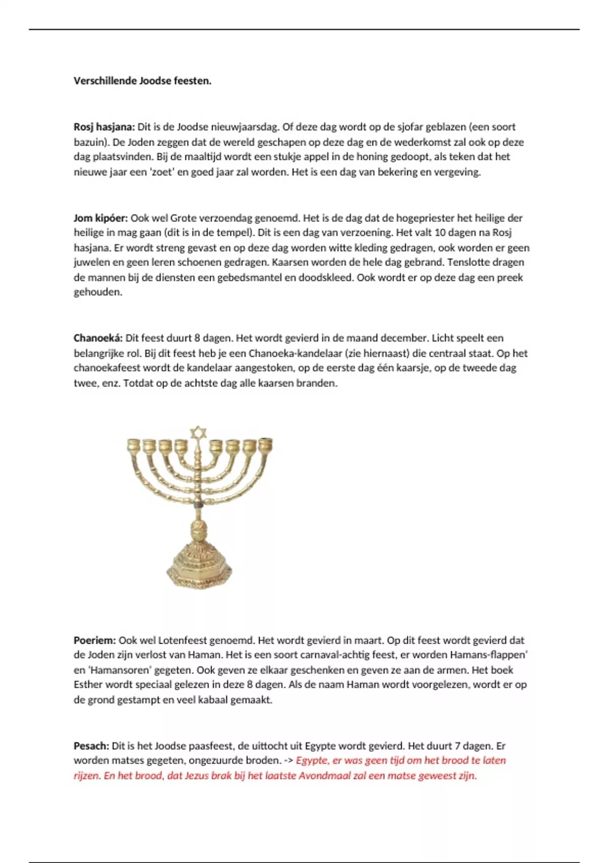 Pesach: Dit is het Joodse paasfeest, de uittocht uit Egypte wordt gevierd. Het duurt 7 dagen. Er