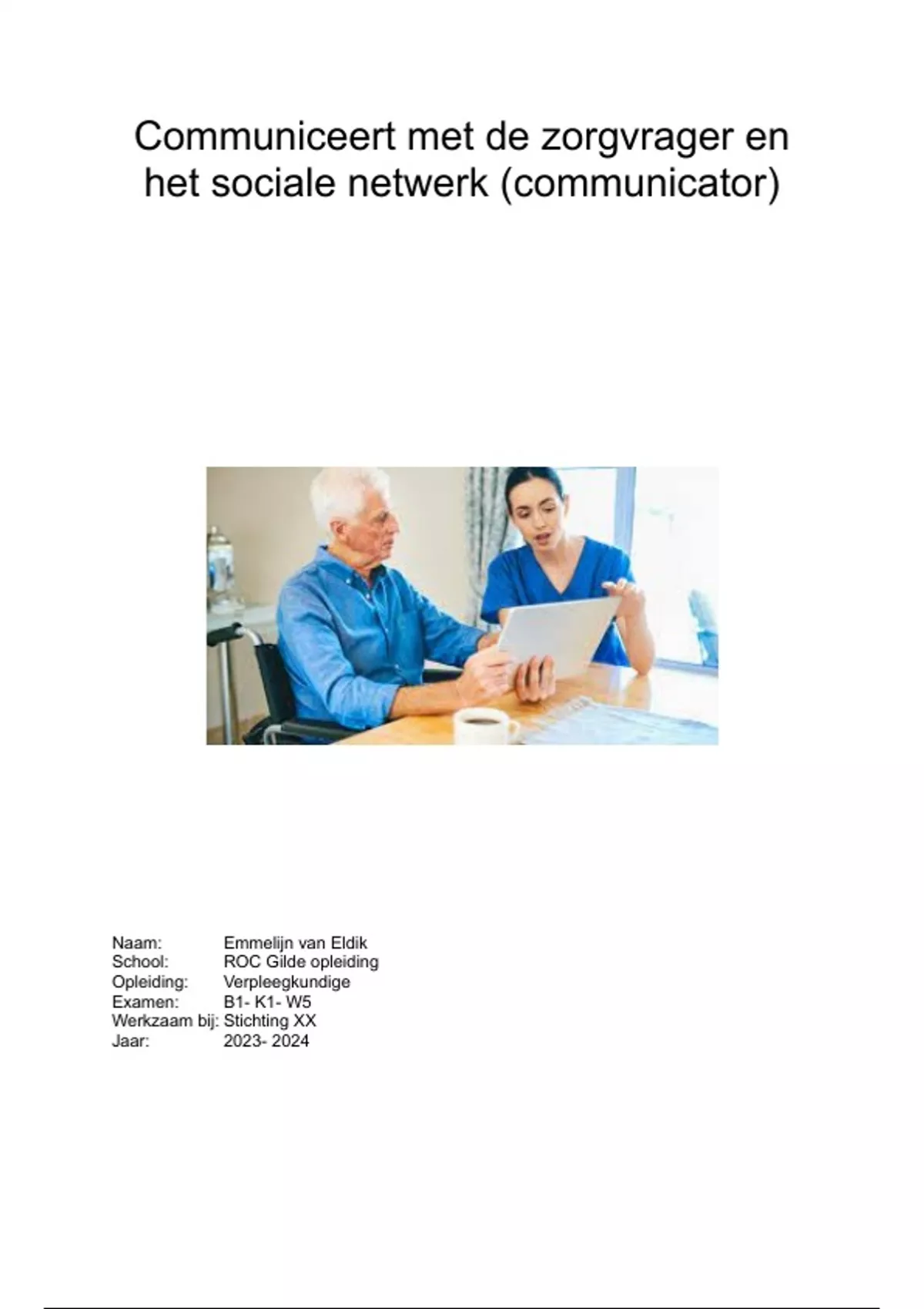 Examen verslag communiceert met de zorgvrager en het sociaal netwerk B1- K1- W5