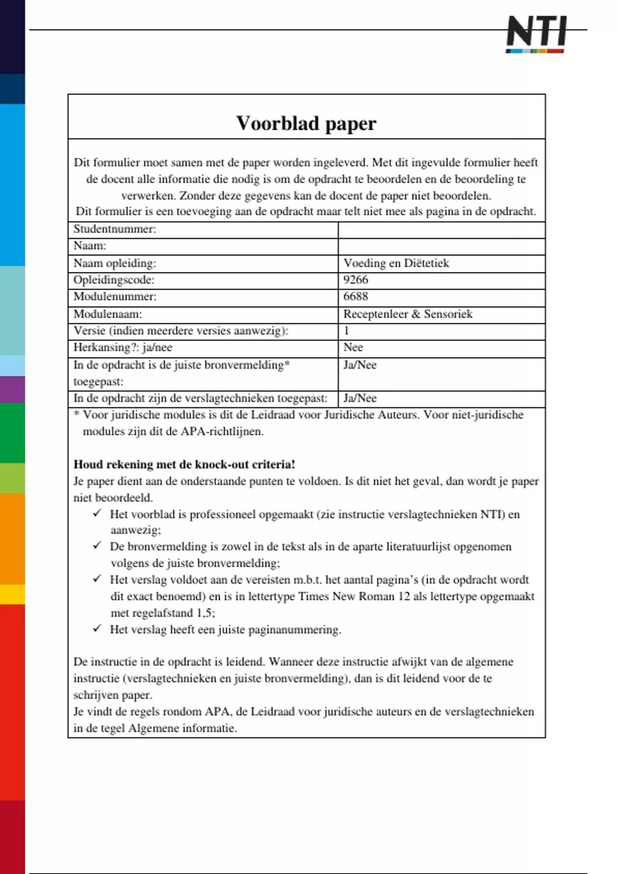 Dit formulier moet samen met de paper worden ingeleverd. Met dit ingevulde formulier heeft