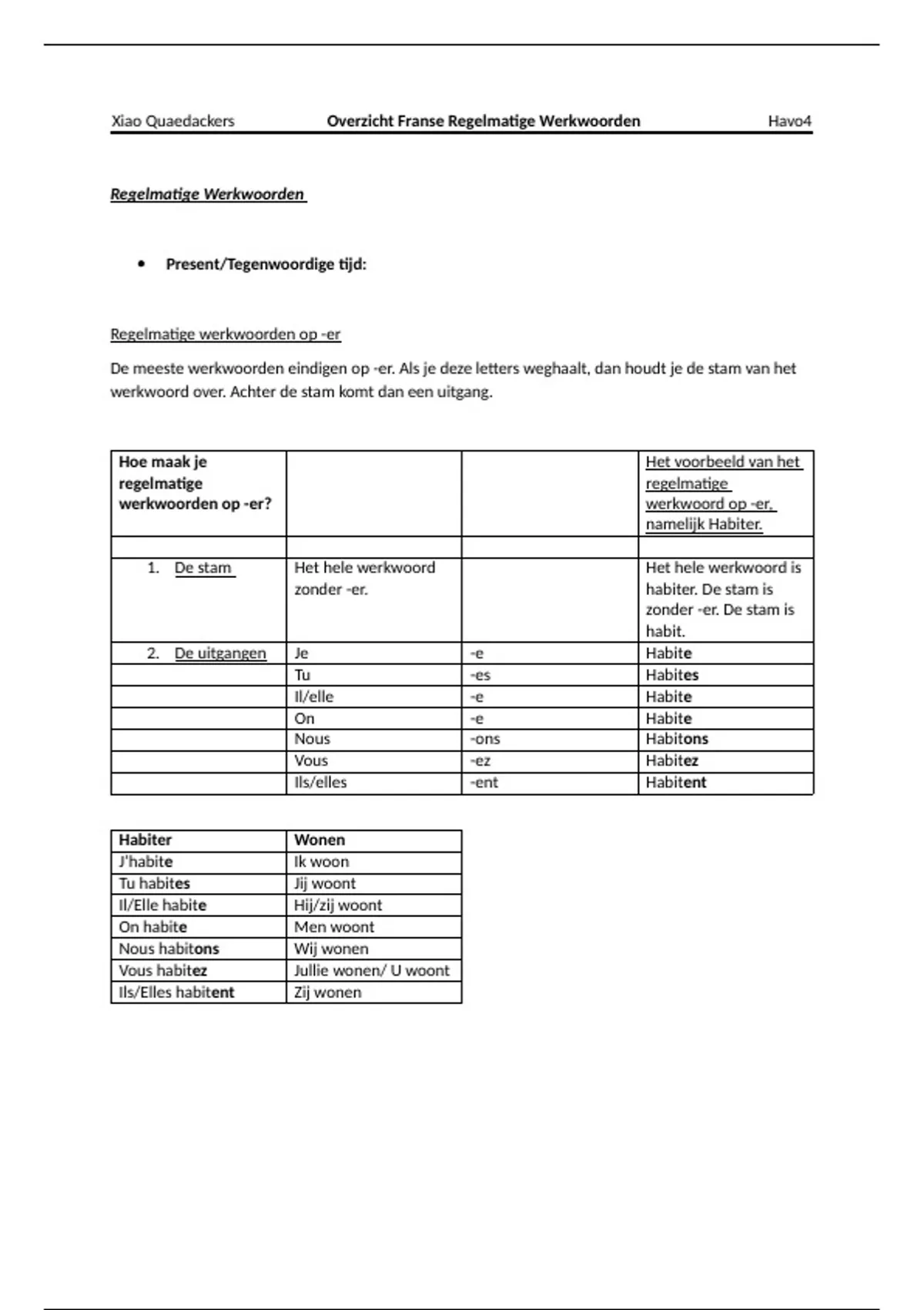 2. De uitgangen Je -e Habite