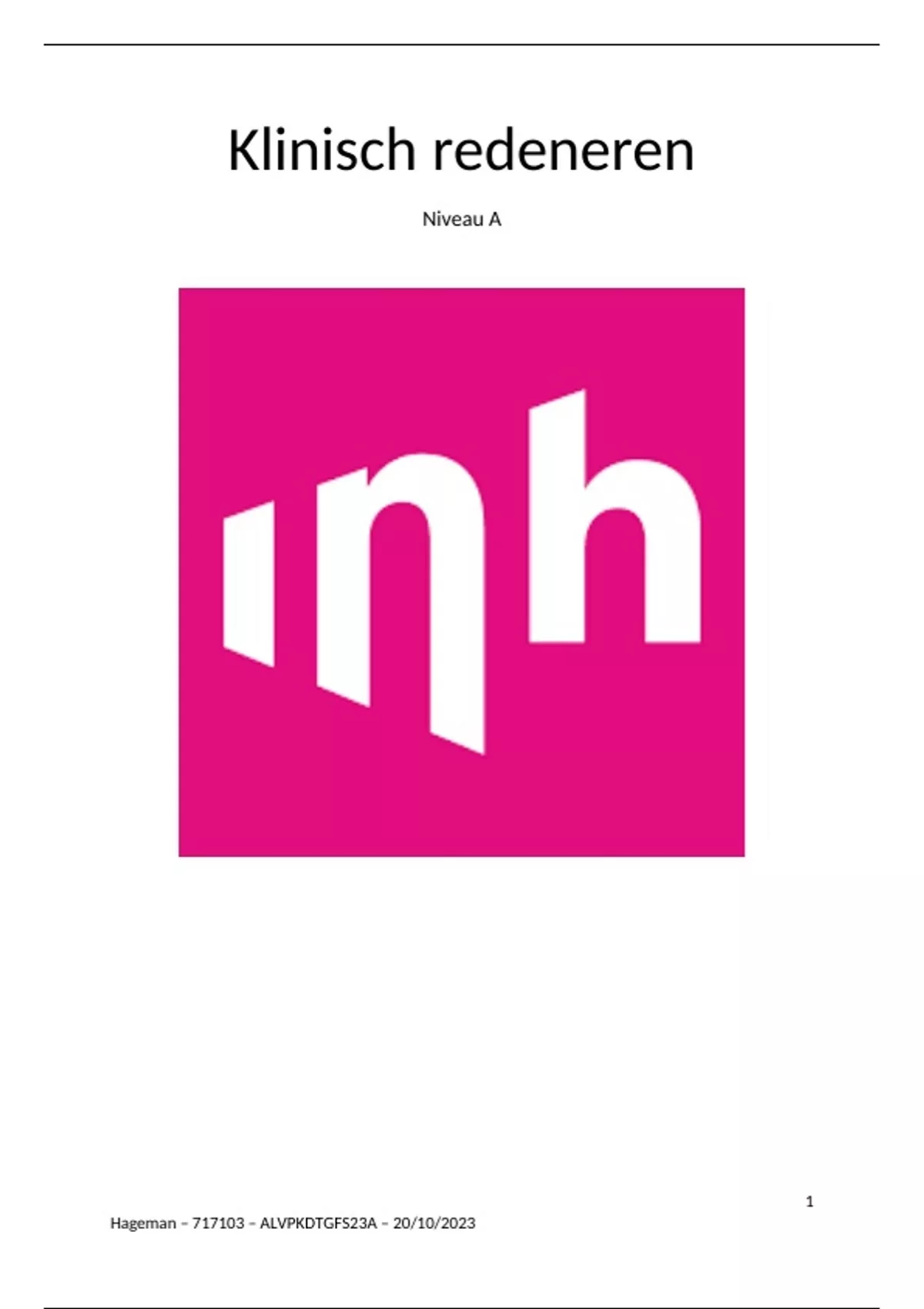 Voor u ligt het verslag van Klinisch Redeneren op niveau A, een vak dat ik heb gevolgd tijdens de