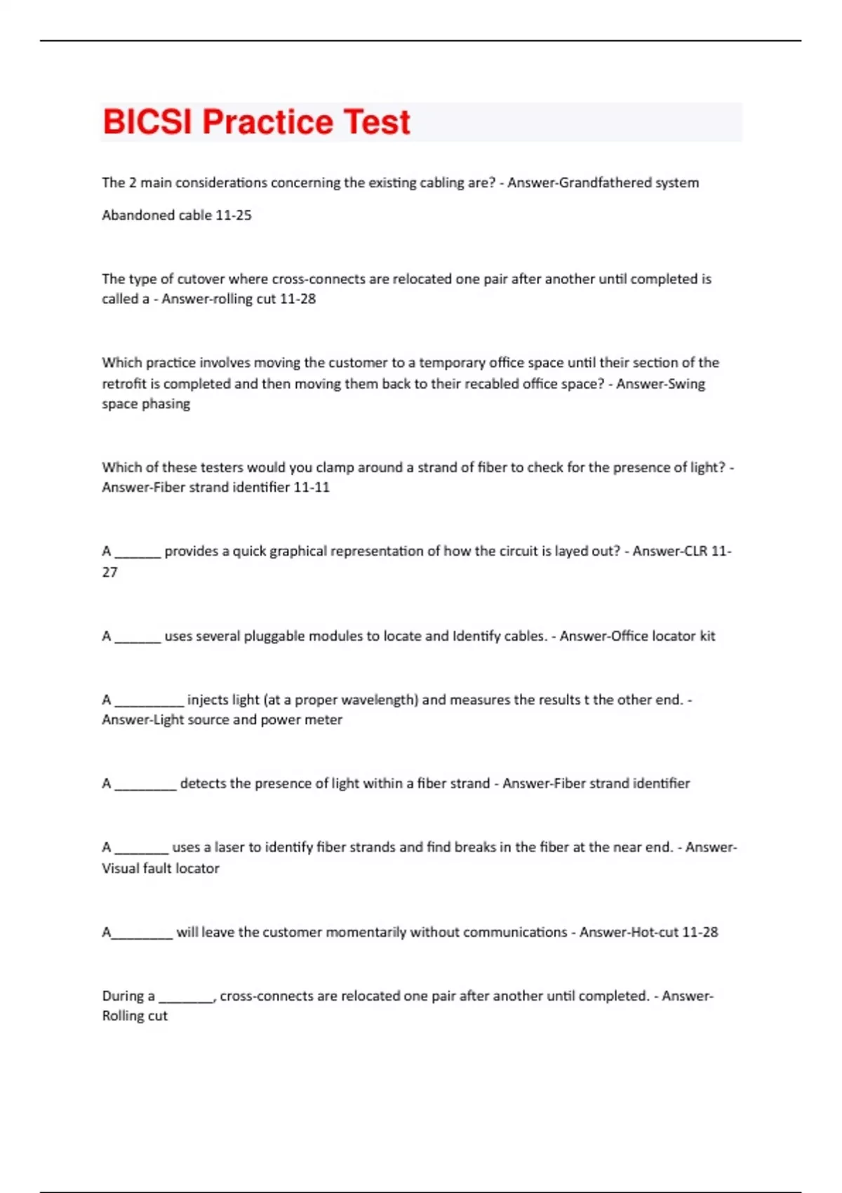 BICSI Practice Test (Questions & Answers) Rated 100% Correct!!