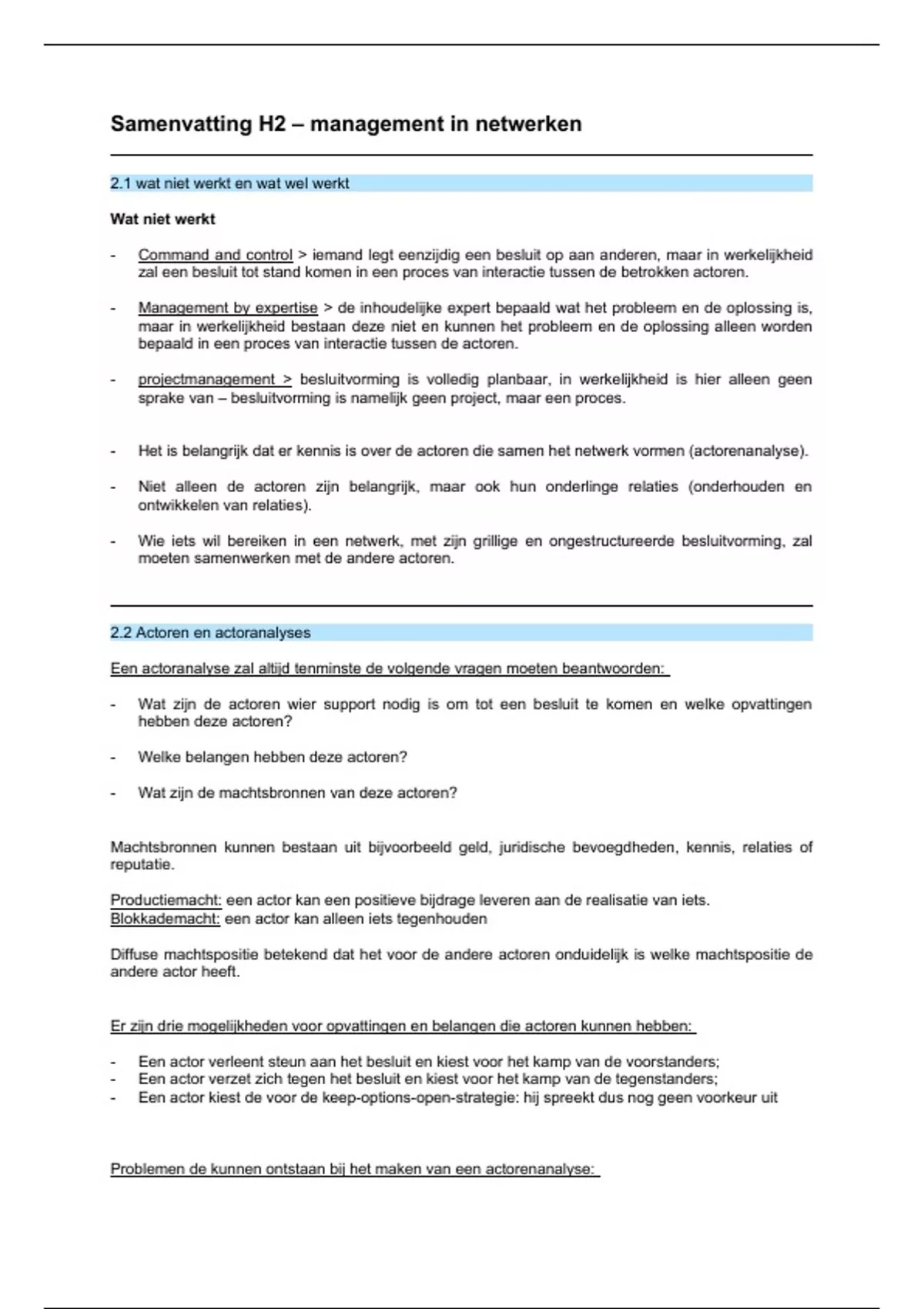 Samenvatting H2 – management in netwerken
