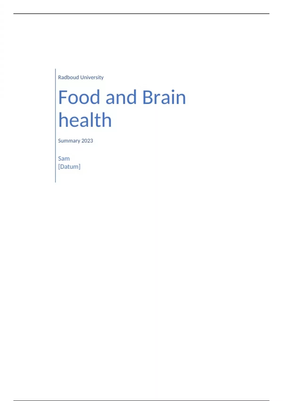 Summary of the course Food and Brian Health. I am a Dutch student so it may contain some spelling errors or Dutch words. I also made a quizlet for this course: