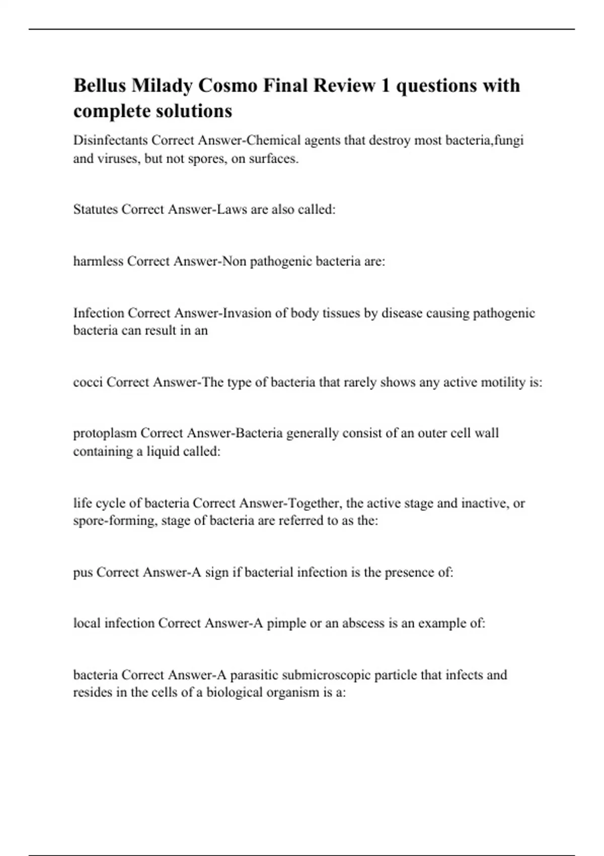 Bellus Milady Cosmo Final Review 1 questions with complete solutions