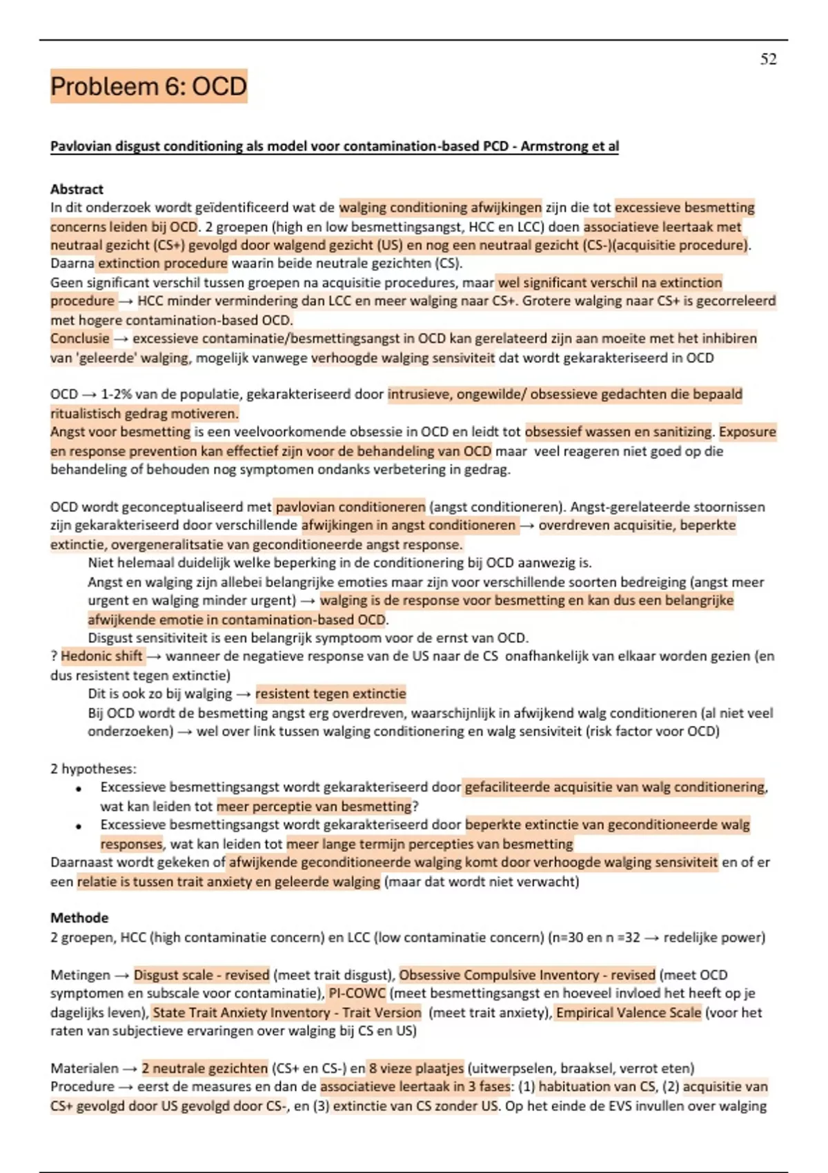 Pavlovian disgust conditioning als model voor contamination-based PCD - Armstrong et al