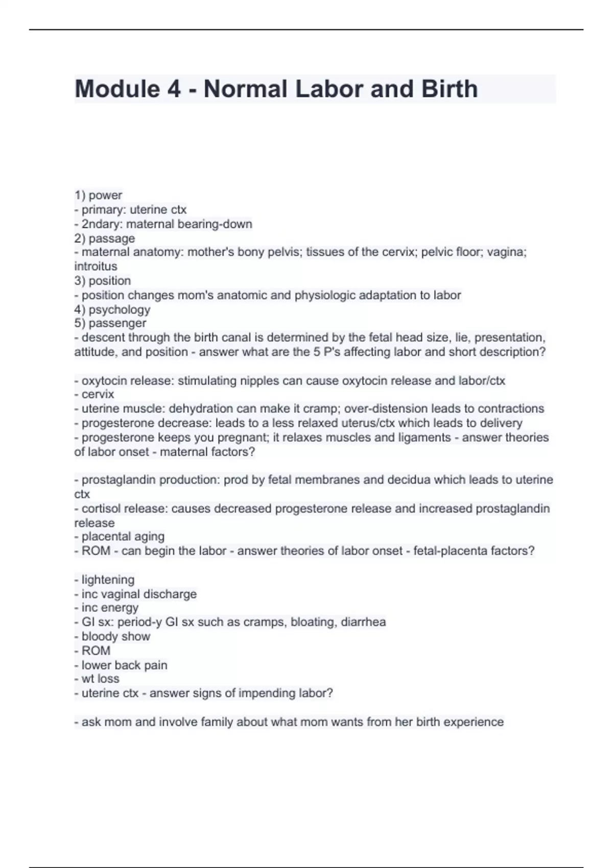 Module 4 - Normal Labor and Birth Questions and Answers latest updated