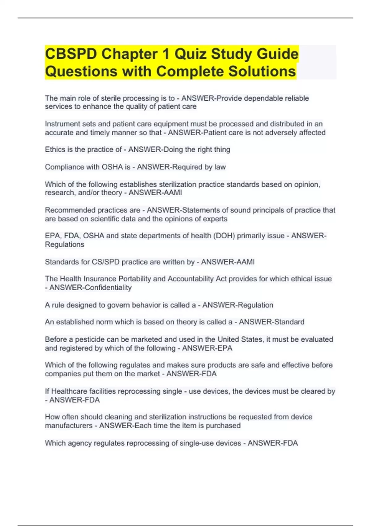 The main role of sterile processing is to - ANSWER-Provide dependable reliable