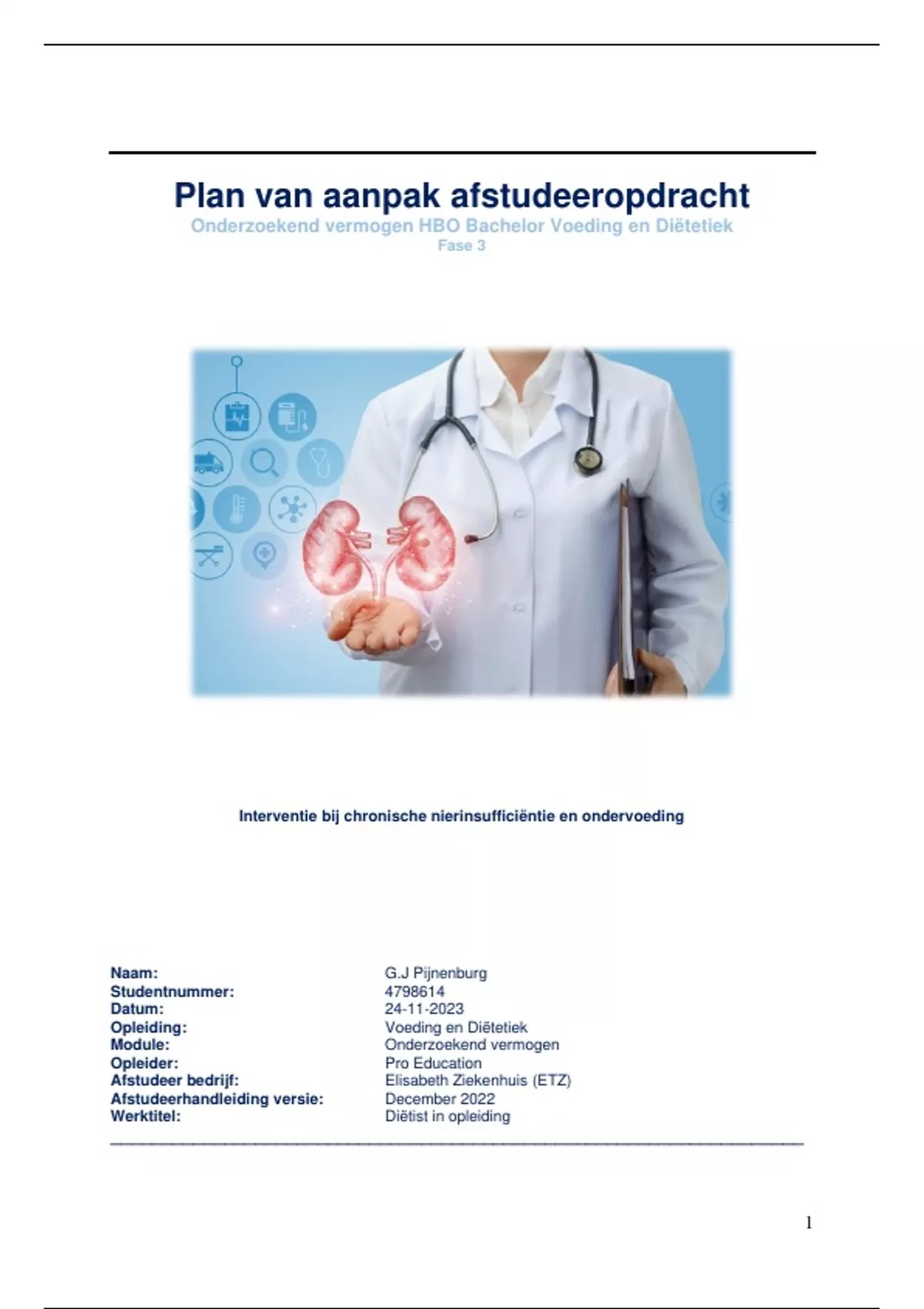 onderzoek. Tijdens de stage bij het Elisabeth ziekenhuis (ETZ), afdeling diëtetiek zijn er verschillende