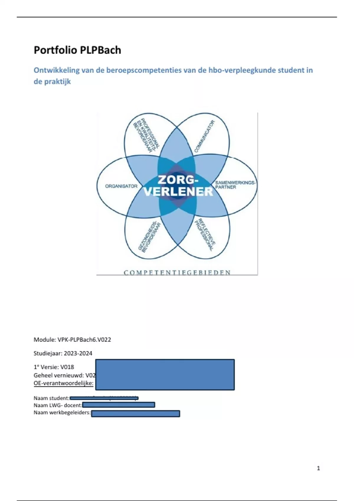 Portfolio bachelor stage vergpleegkunde, gehaald met een 9!