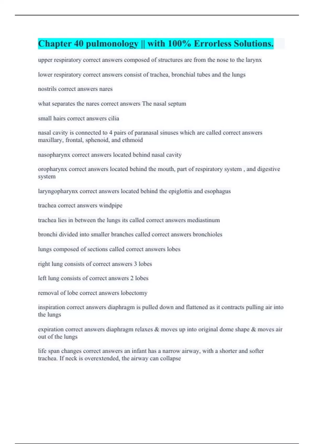 Chapter 40 pulmonology || with 100% Errorless Solutions.