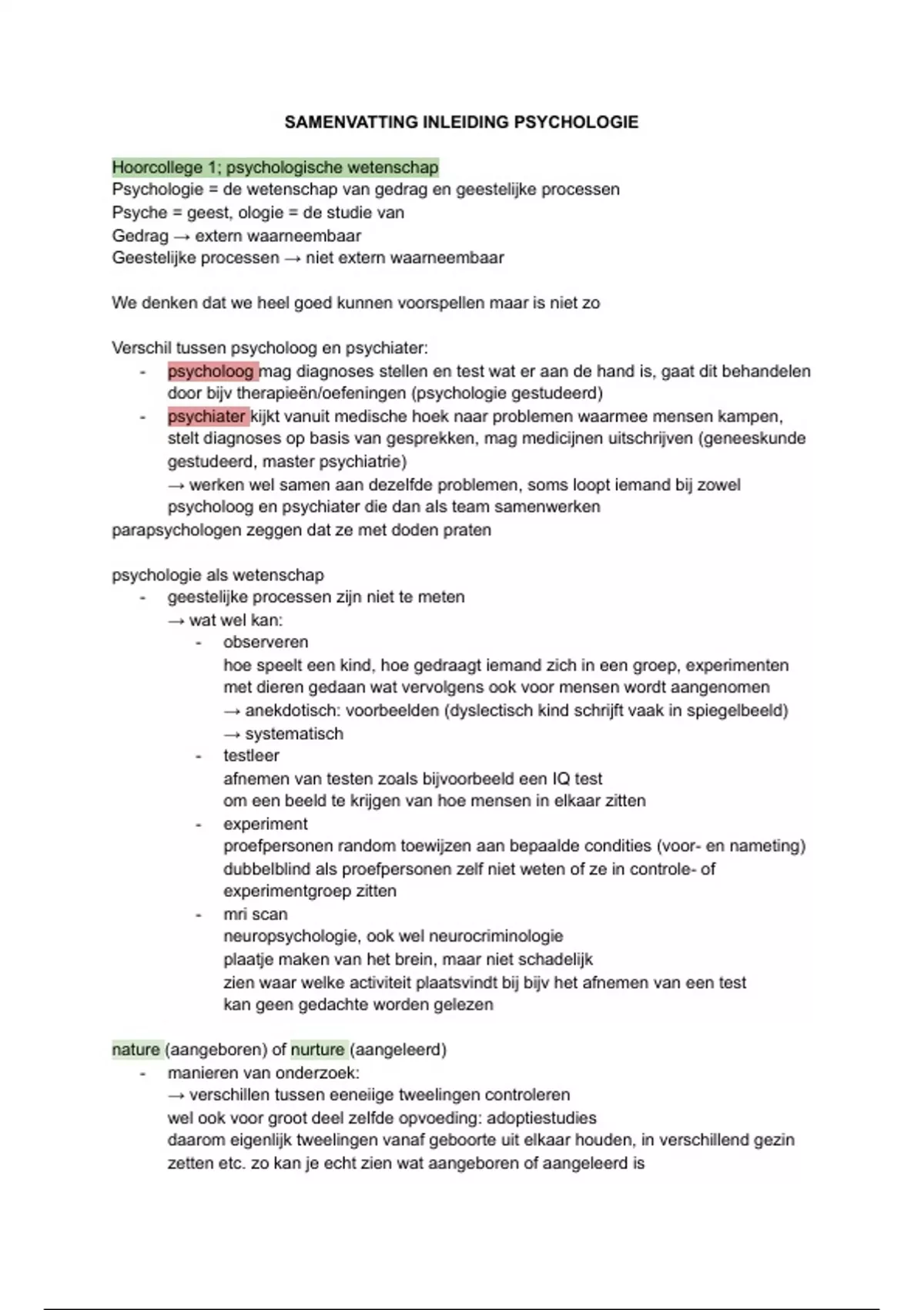 Hoorcollege 1; psychologische wetenschap
