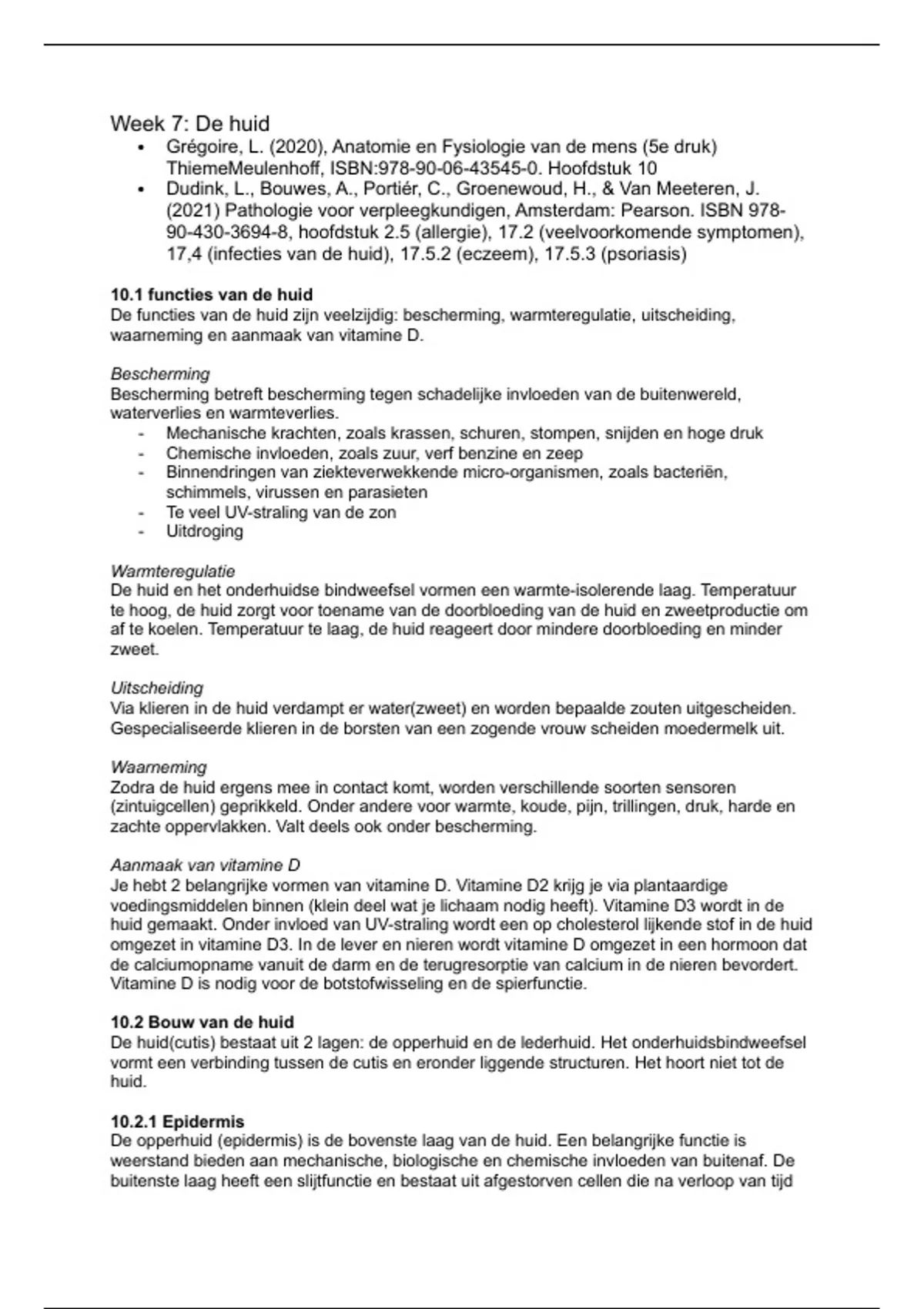 10.1 functies van de huid