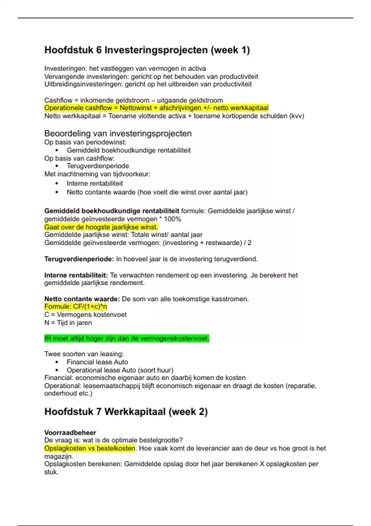 Hoofdstuk 6 Investeringsprojecten (week 1)