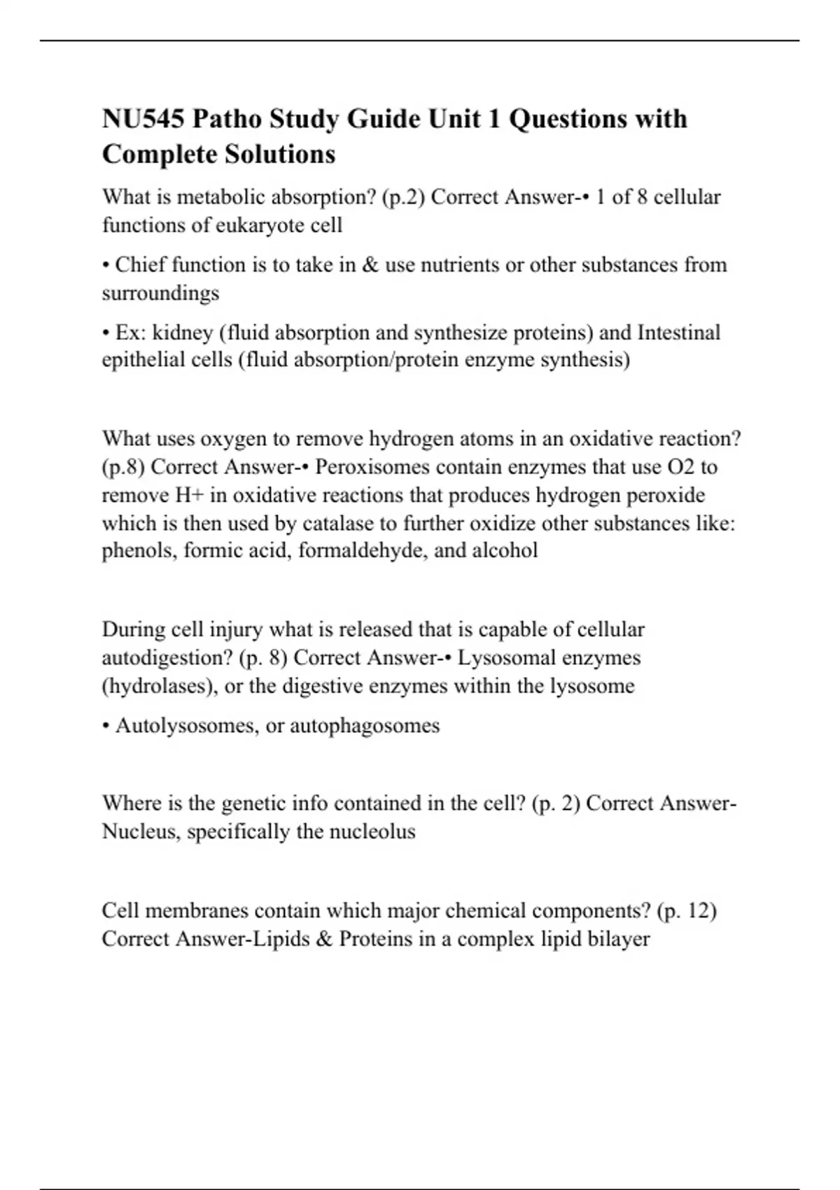 nu545 patho study guide unit 1 questions with comp
