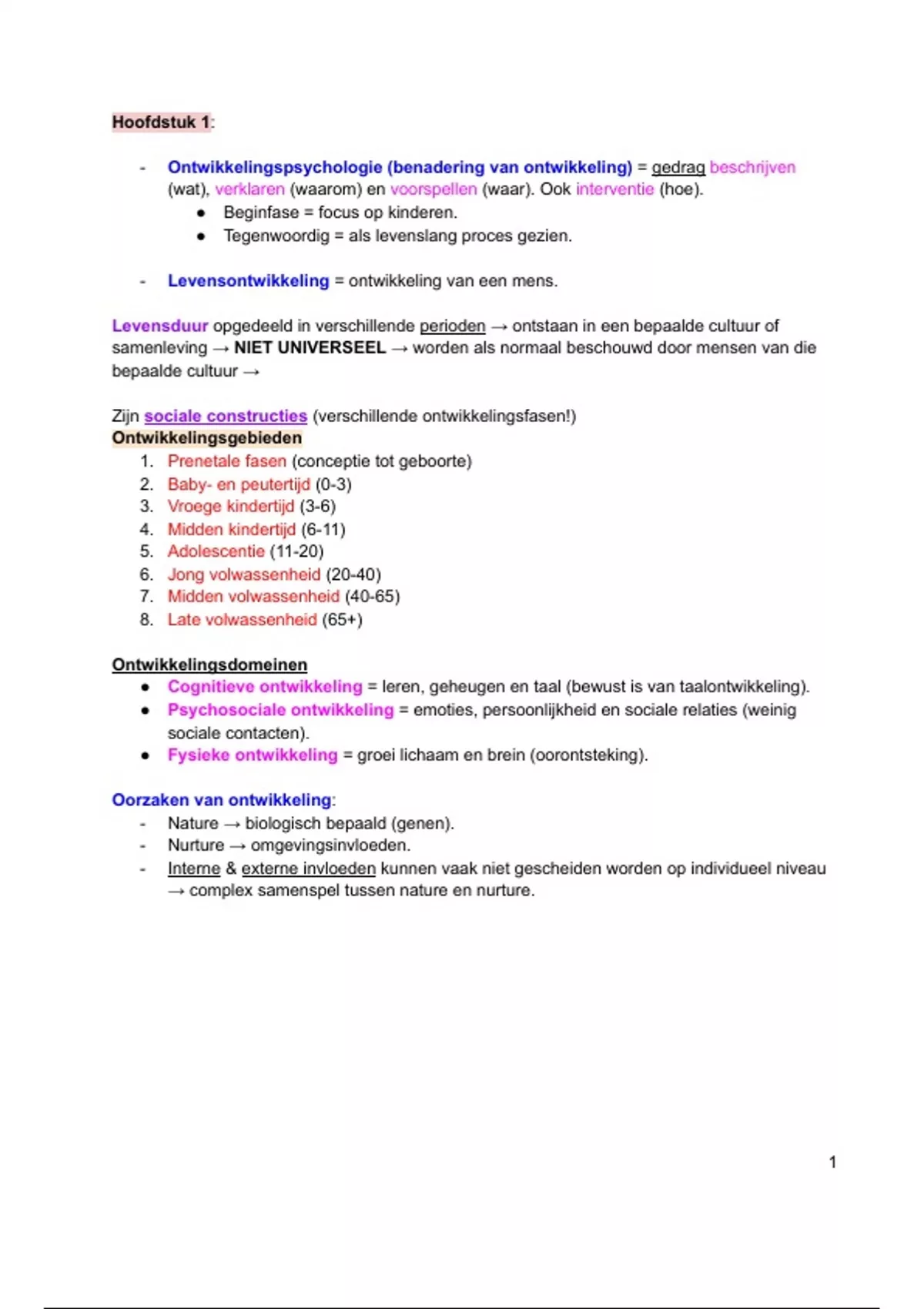 ● Cognitieve ontwikkeling = leren, geheugen en taal (bewust is van taalontwikkeling).