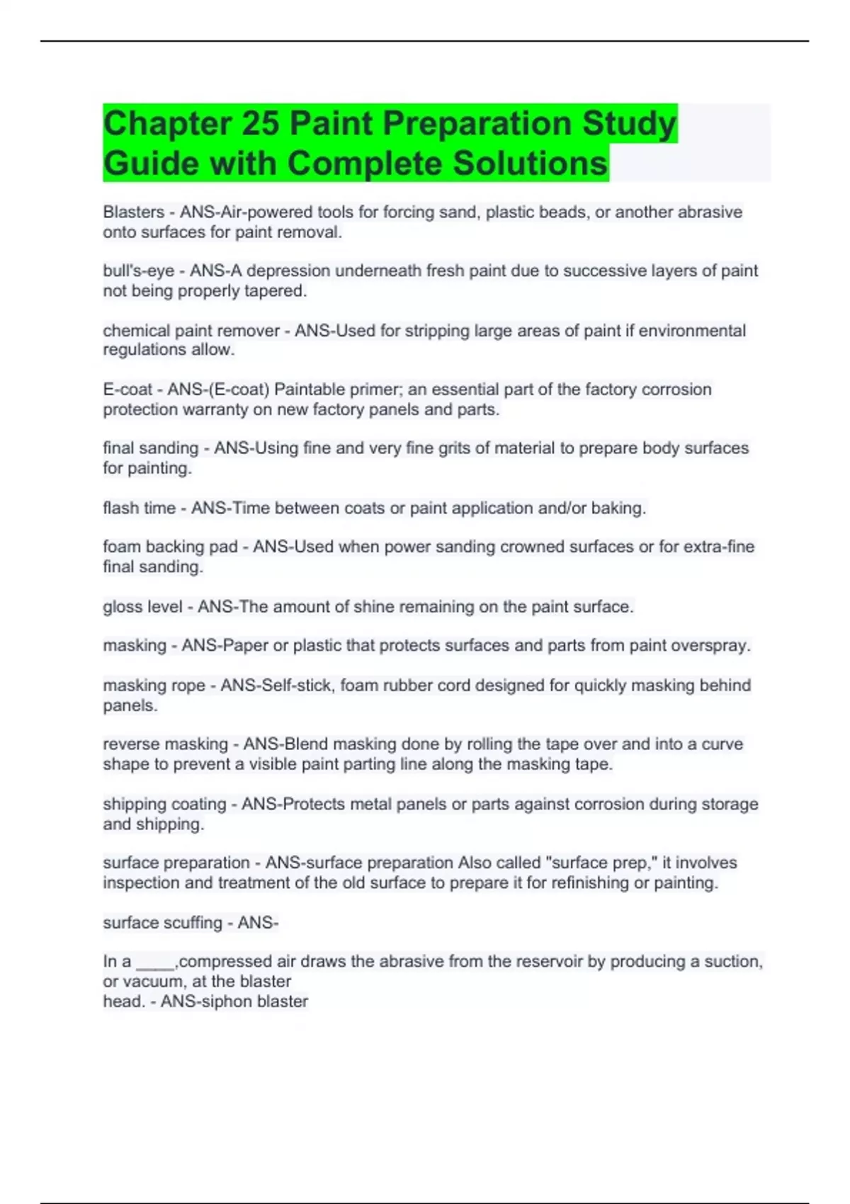 Chapter 25 Paint Preparation Study Guide with Complete Solutions