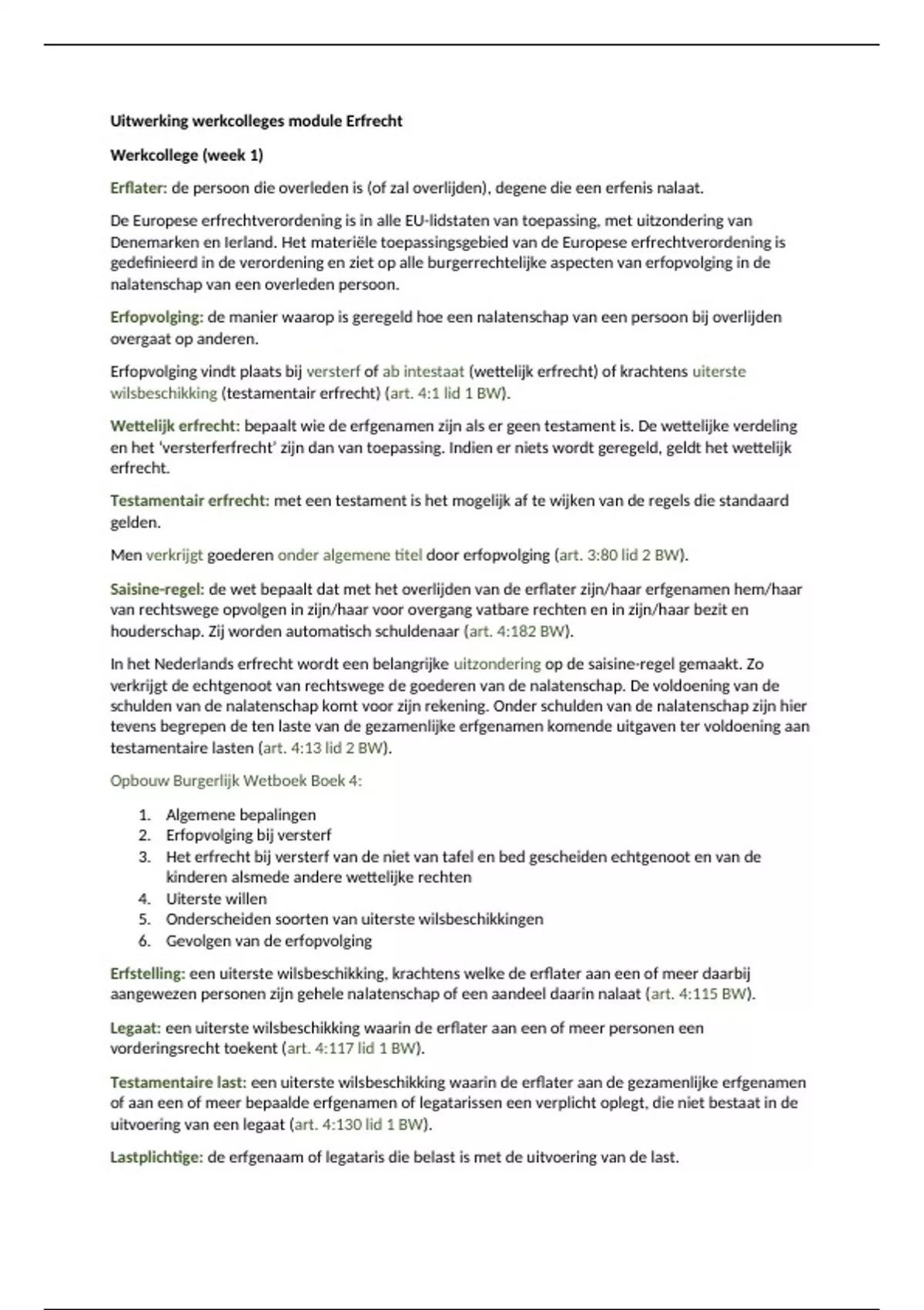 Uitwerking werkcolleges Erfrecht