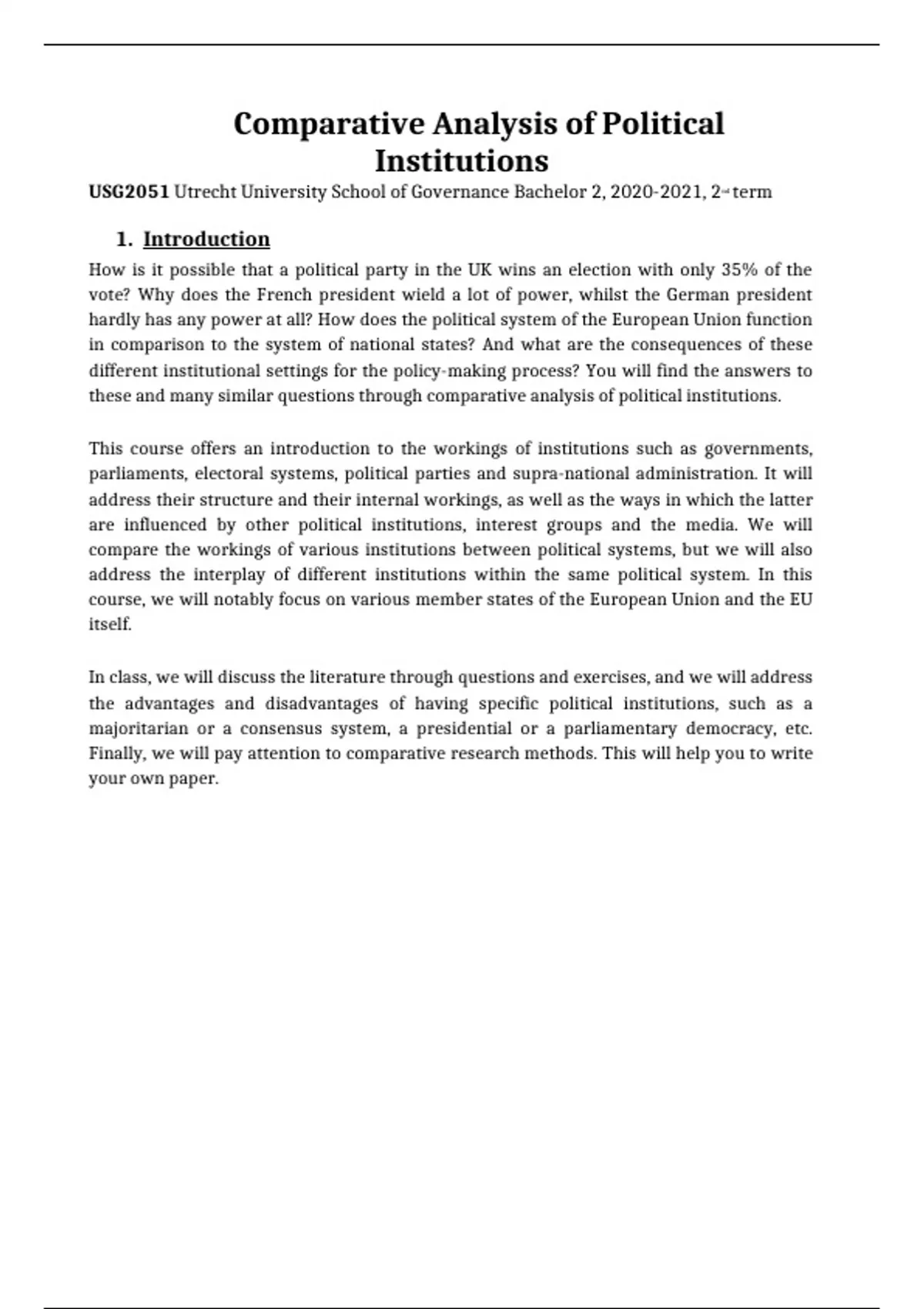 USG2051 Utrecht University School of Governance Bachelor 2, 2020-2021, 2 term nd