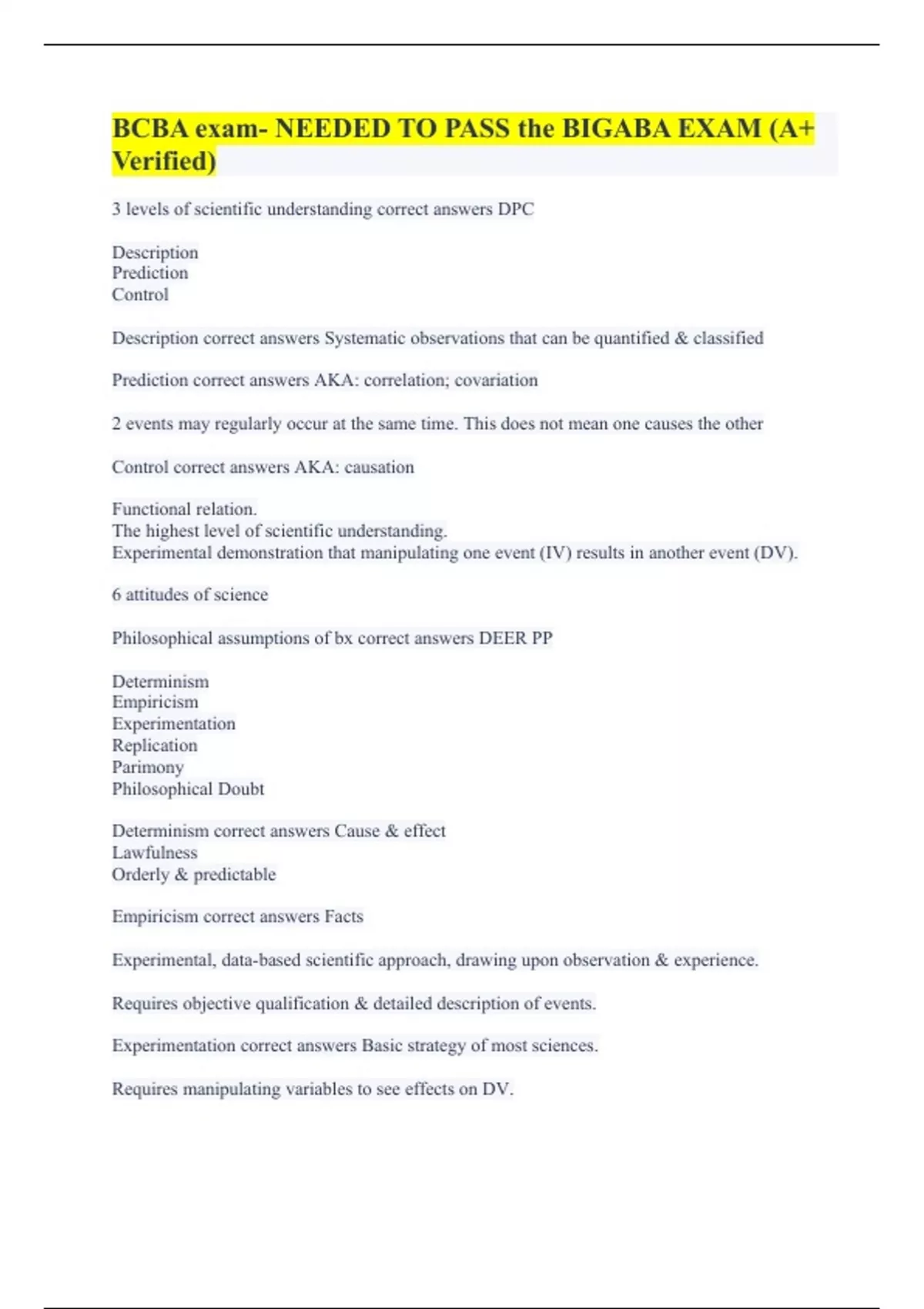BCBA exam- NEEDED TO PASS the BIGABA EXAM (A+ Verified)