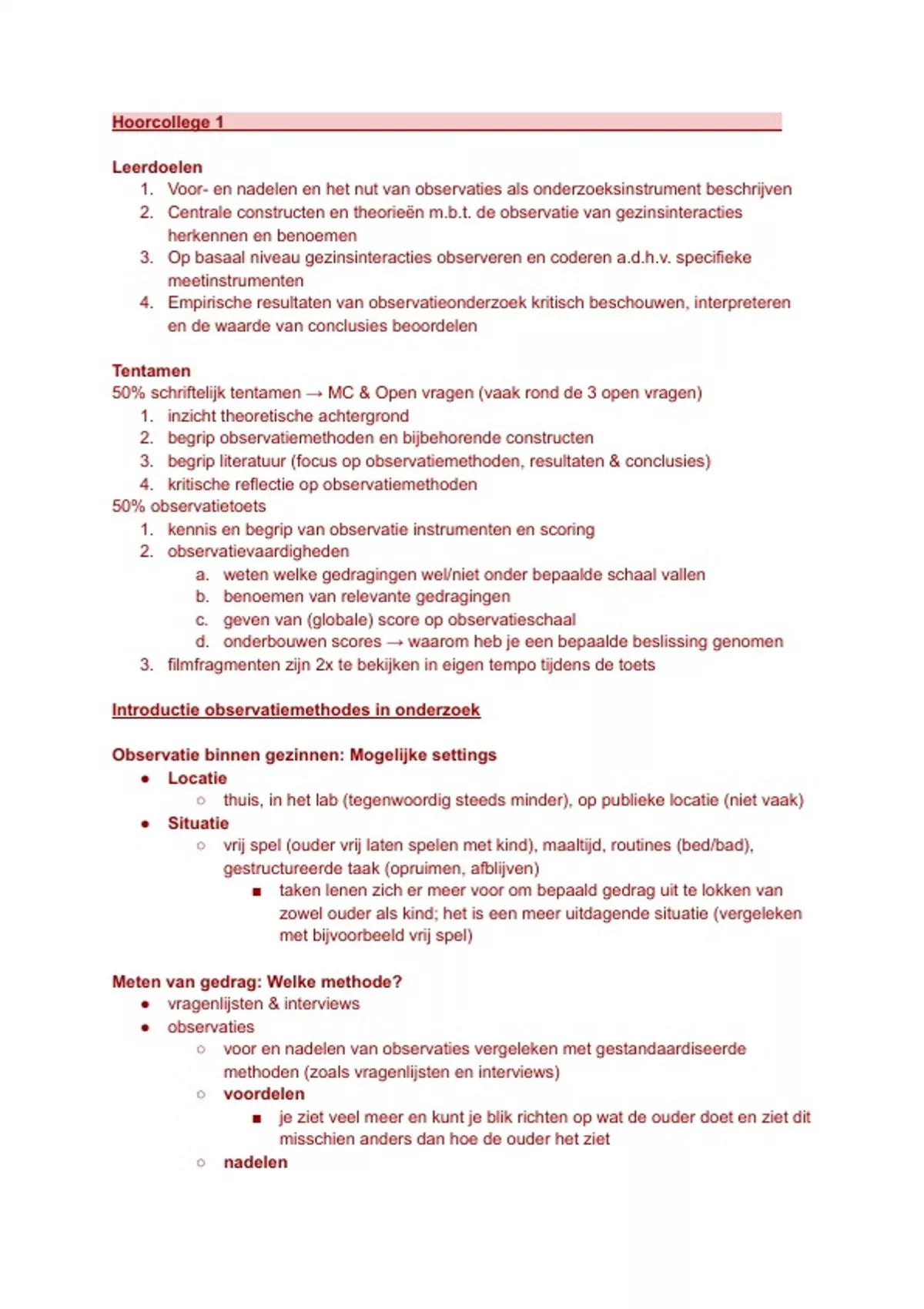 1. Voor- en nadelen en het nut van observaties als onderzoeksinstrument beschrijven