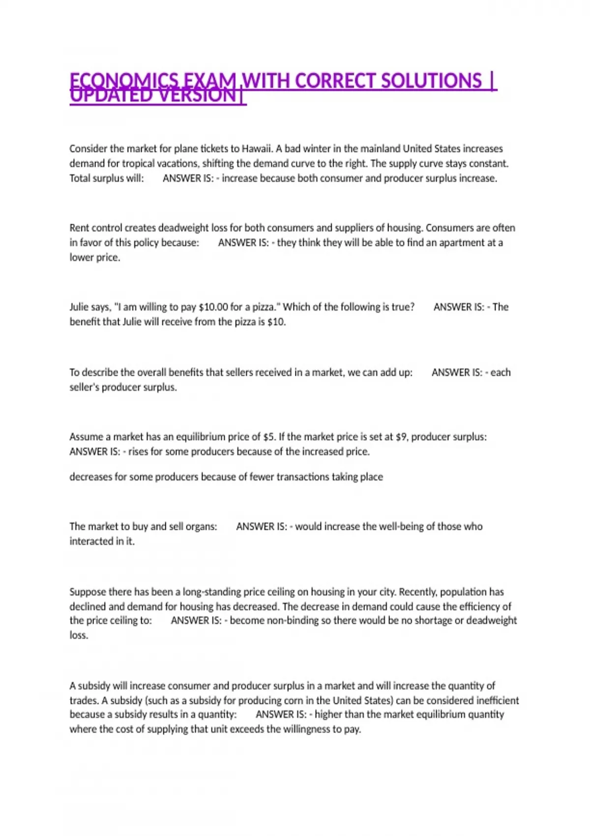 ECONOMICS EXAM WITH CORRECT SOLUTIONS |UPDATED VERSION|