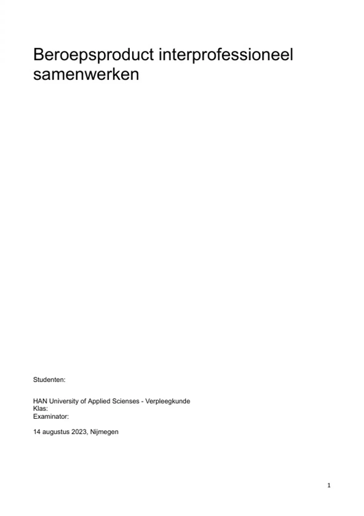 Beroepsproduct interprofessioneel